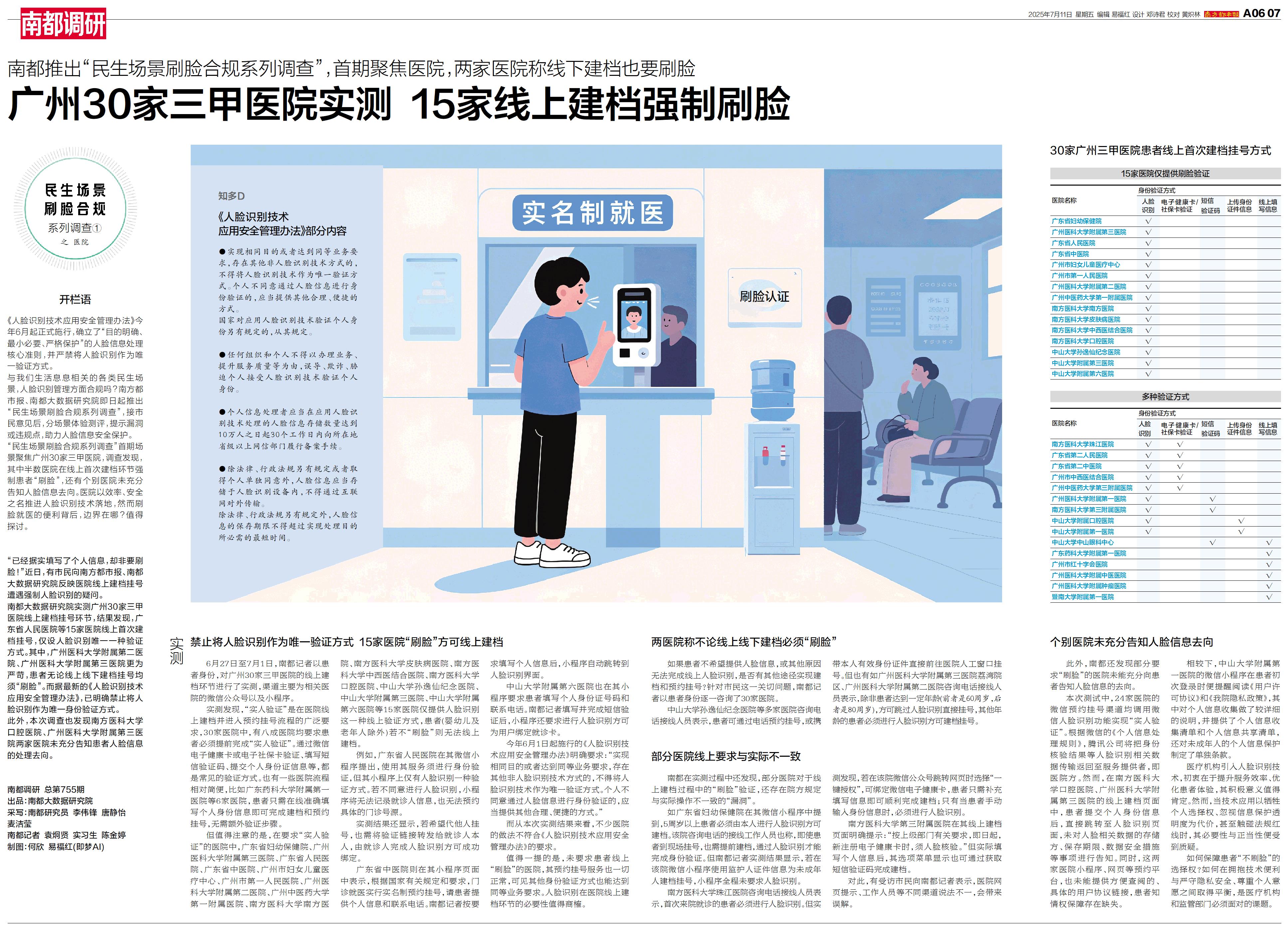 广州30家三甲医院实测 15家线上建档强制刷脸