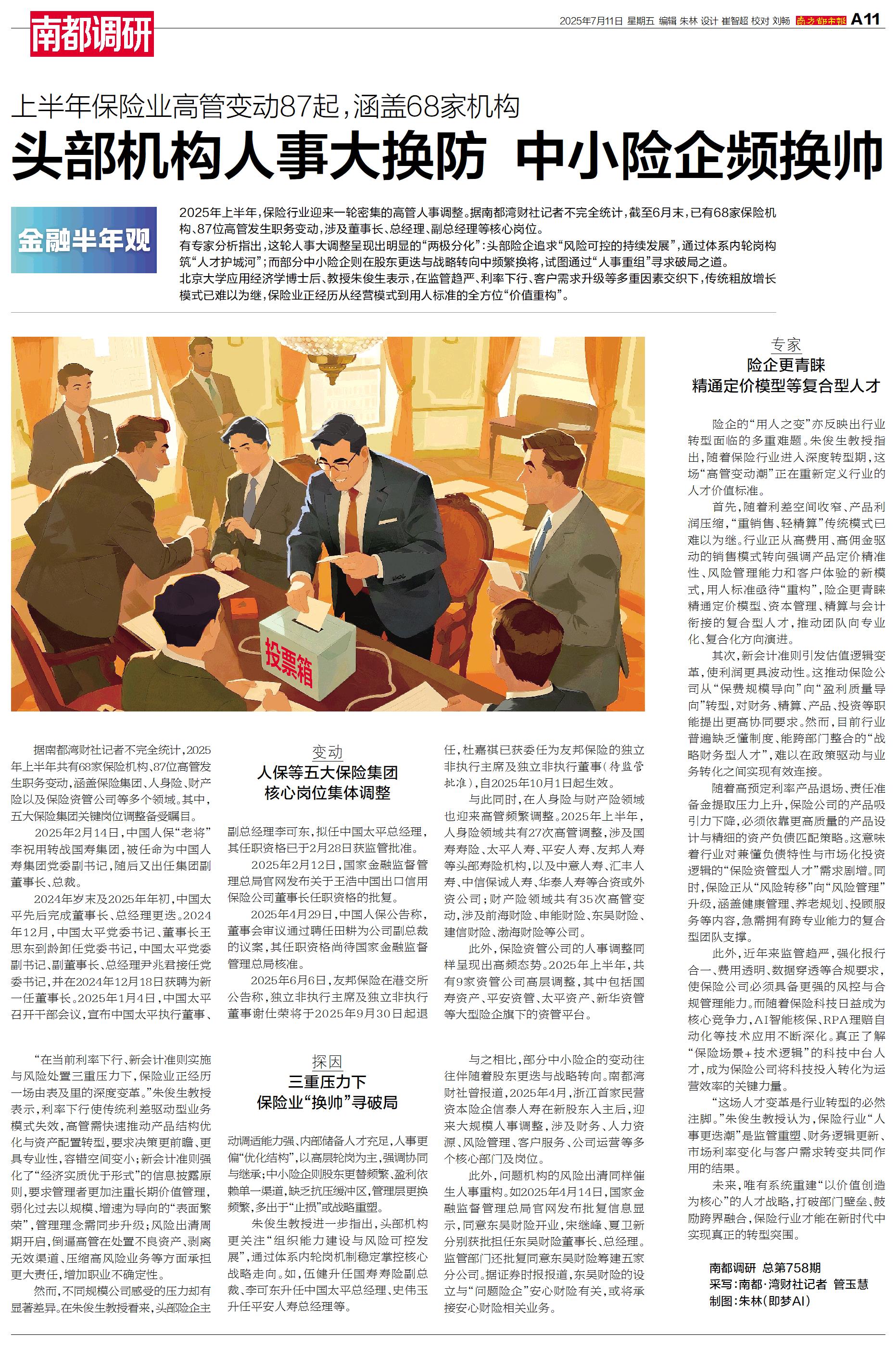 据南都湾财社记者不完全统计,截至6月末,已有68家保险机构、87位高管发生职务变动,涉及董事长、总经理、副总经理等核心岗位。