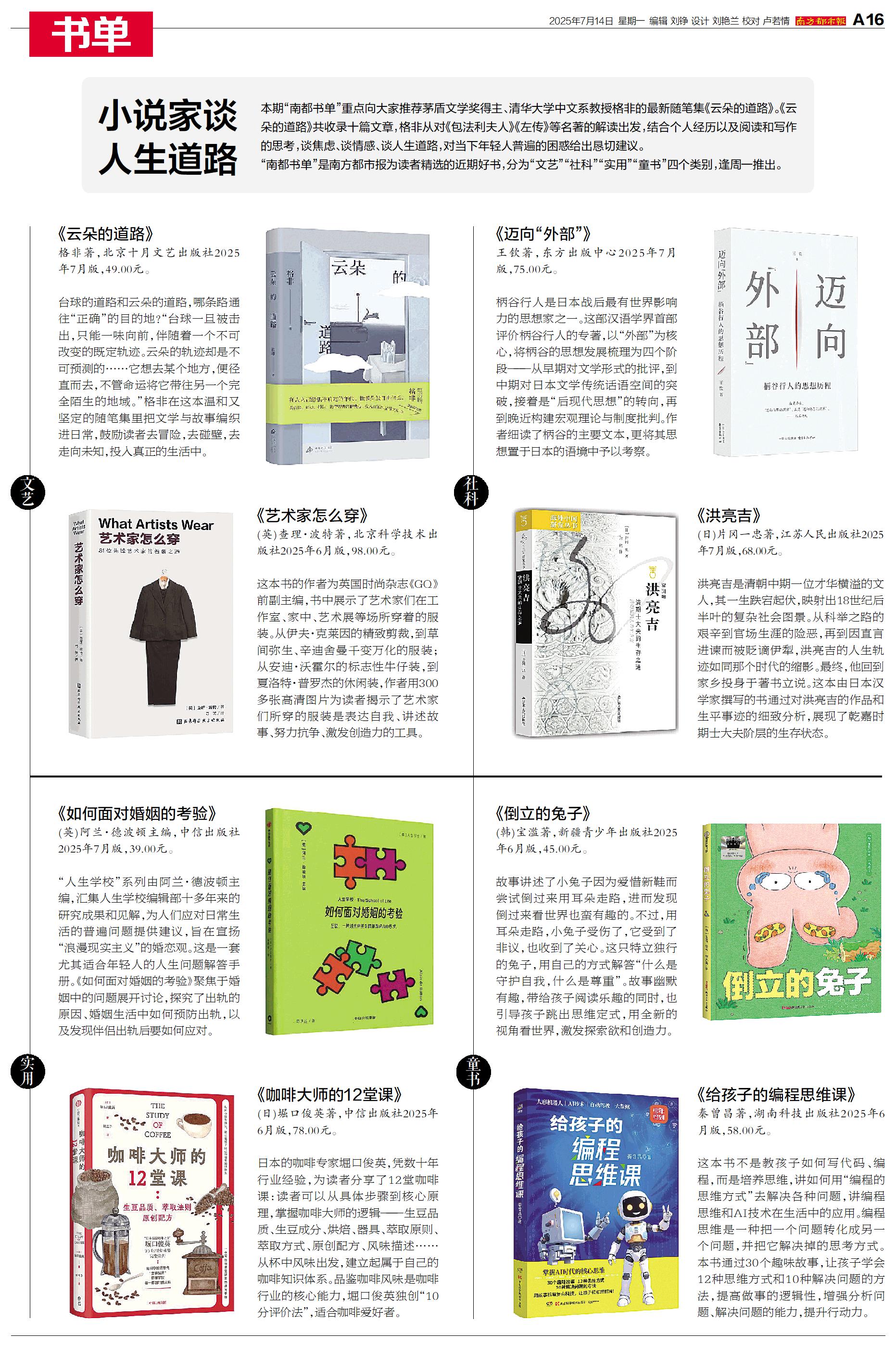本期“南都书单”重点向大家推荐茅盾文学奖得主、清华大学中文系教授格非的最新随笔集《云朵的道路》。