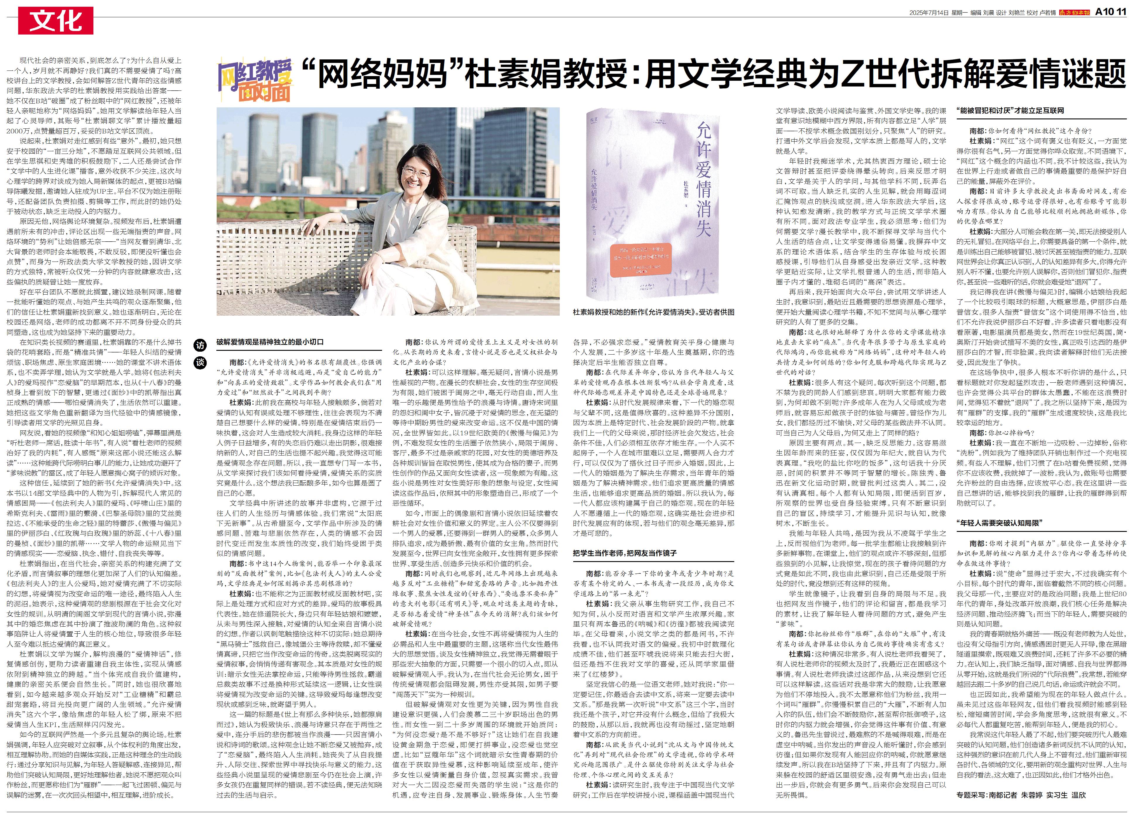 “网络妈妈”杜素娟教授:用文学经典为Z世代拆解爱情谜题