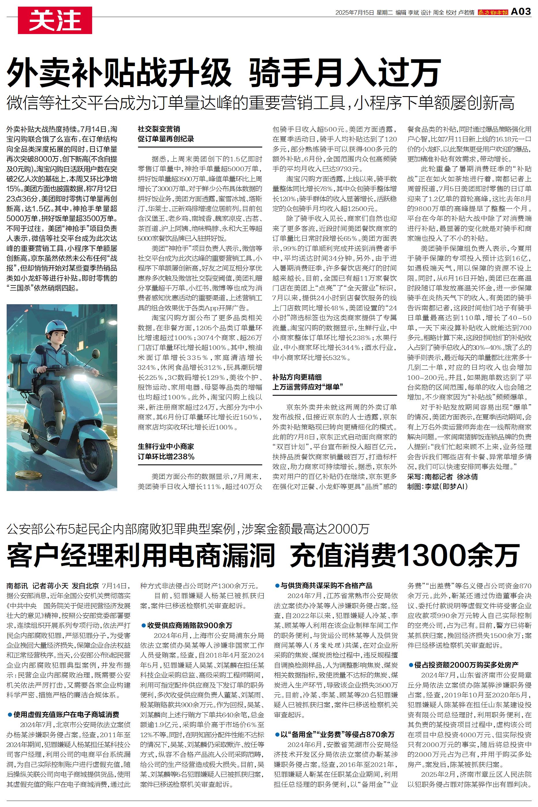 外卖补贴战升级 骑手月入过万