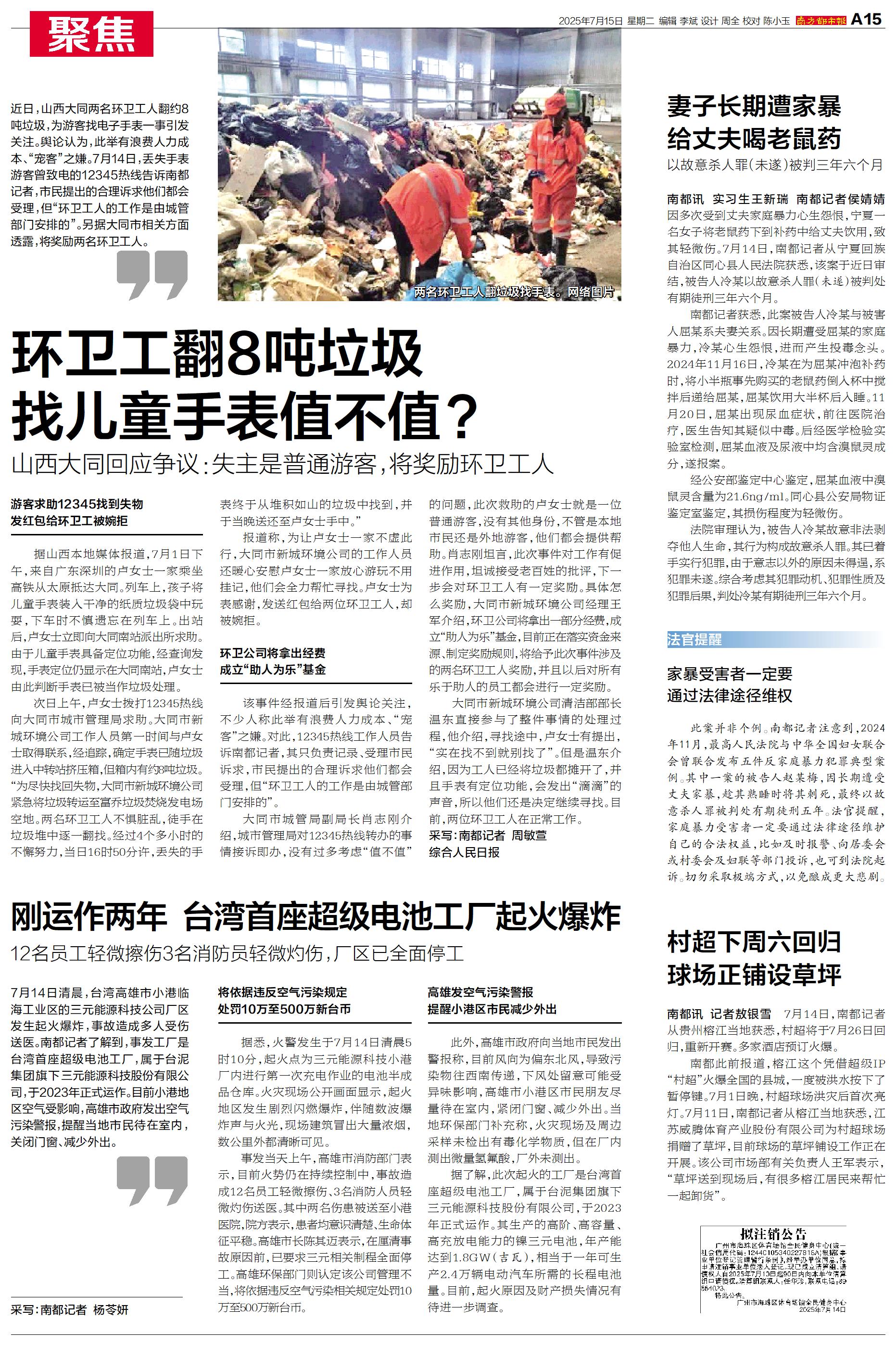 近日,山西大同两名环卫工人翻约8吨垃圾,为游客找电子手表一事引发关注。