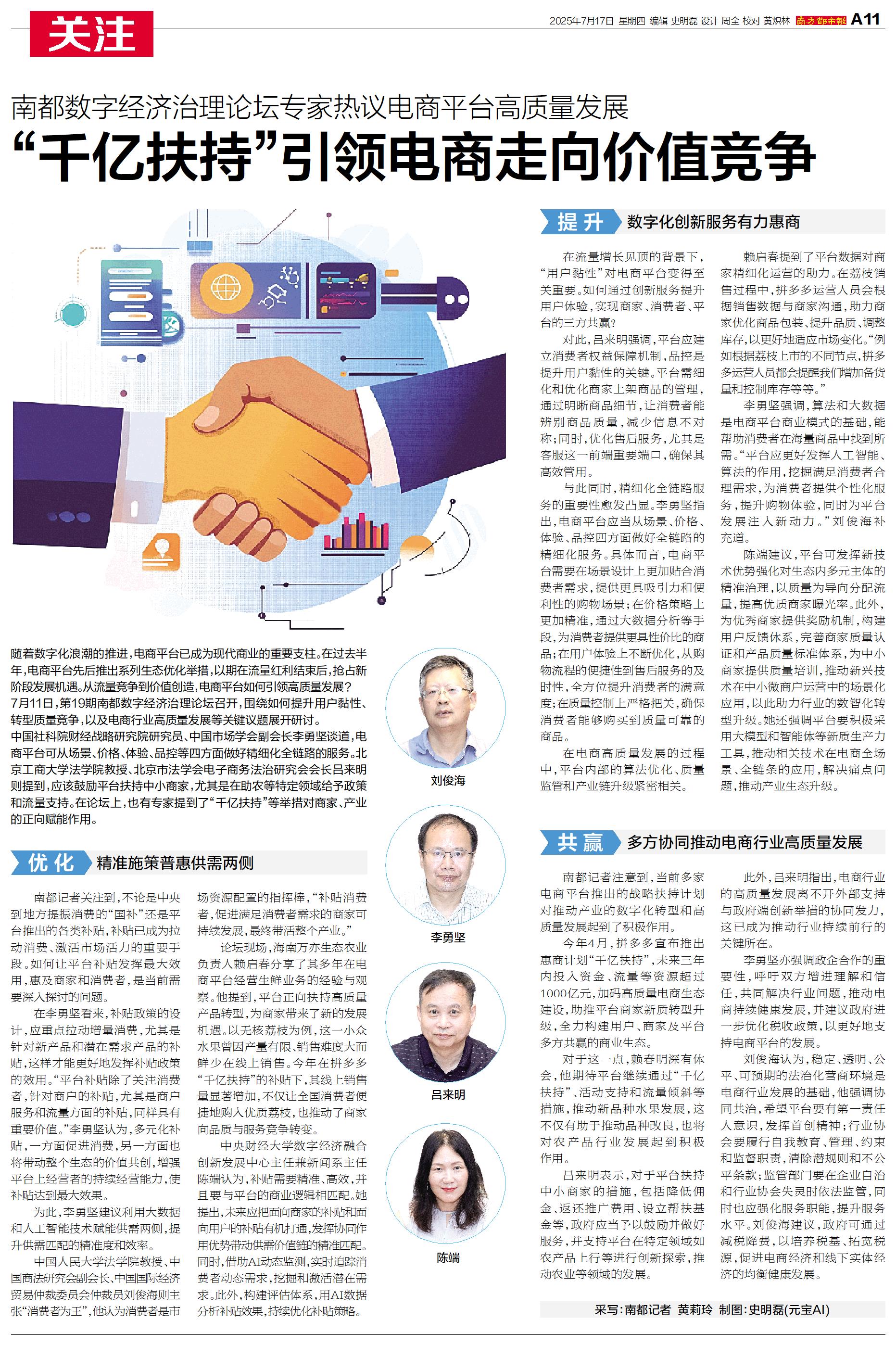 7月11日,第19期南都数字经济治理论坛召开,围绕如何提升用户黏性、转型质量竞争,以及电商行业高质量发展等关键议题展开研讨。