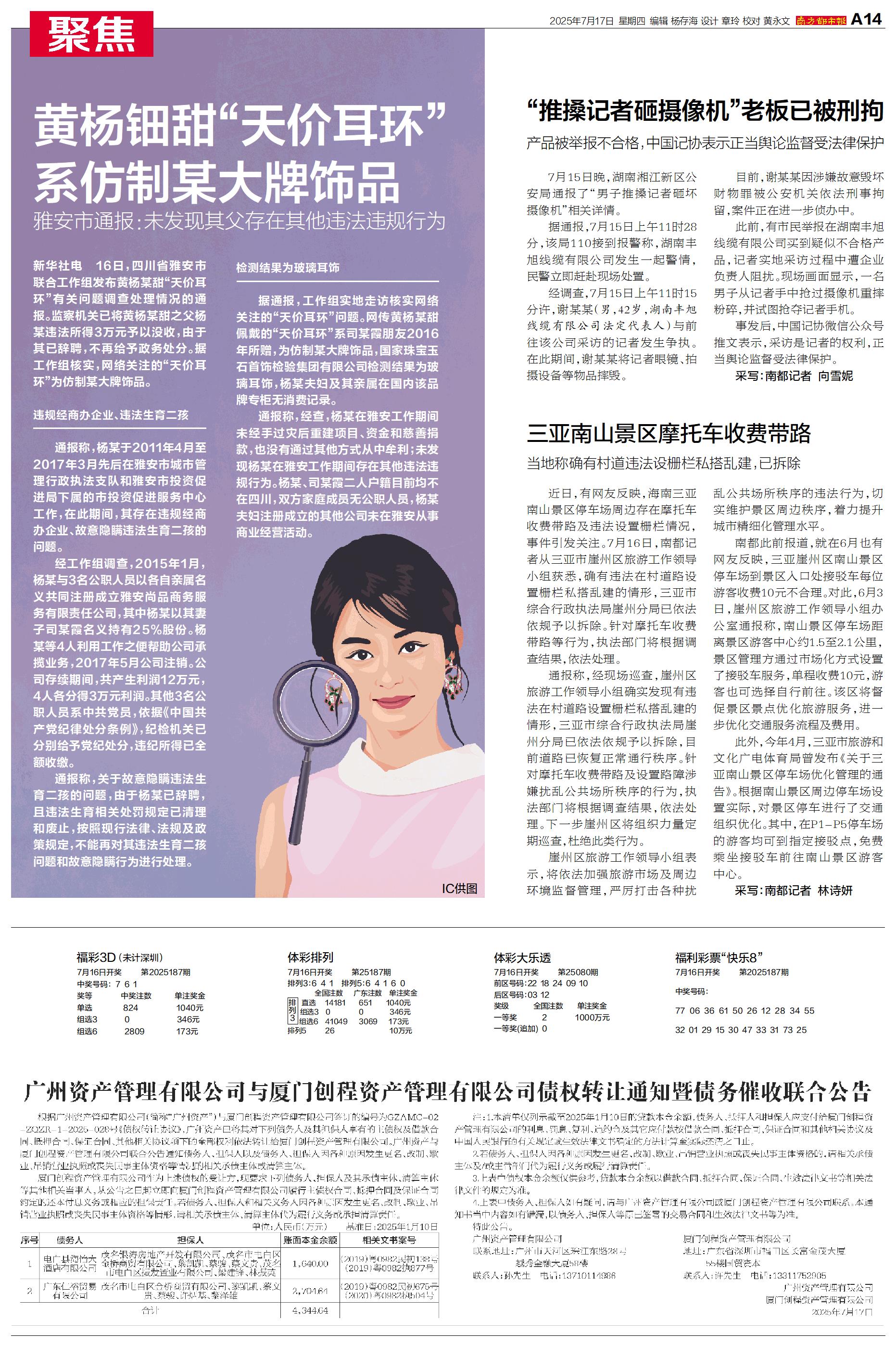 16日,四川省雅安市联合工作组发布黄杨某甜“天价耳环”有关问题调查处理情况的通报。