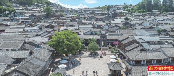 6月28日,云南丽江市古城区丽江古城风景区,众多游客在游玩、休闲,观赏古朴建筑、品味纳西风情。 IC供图