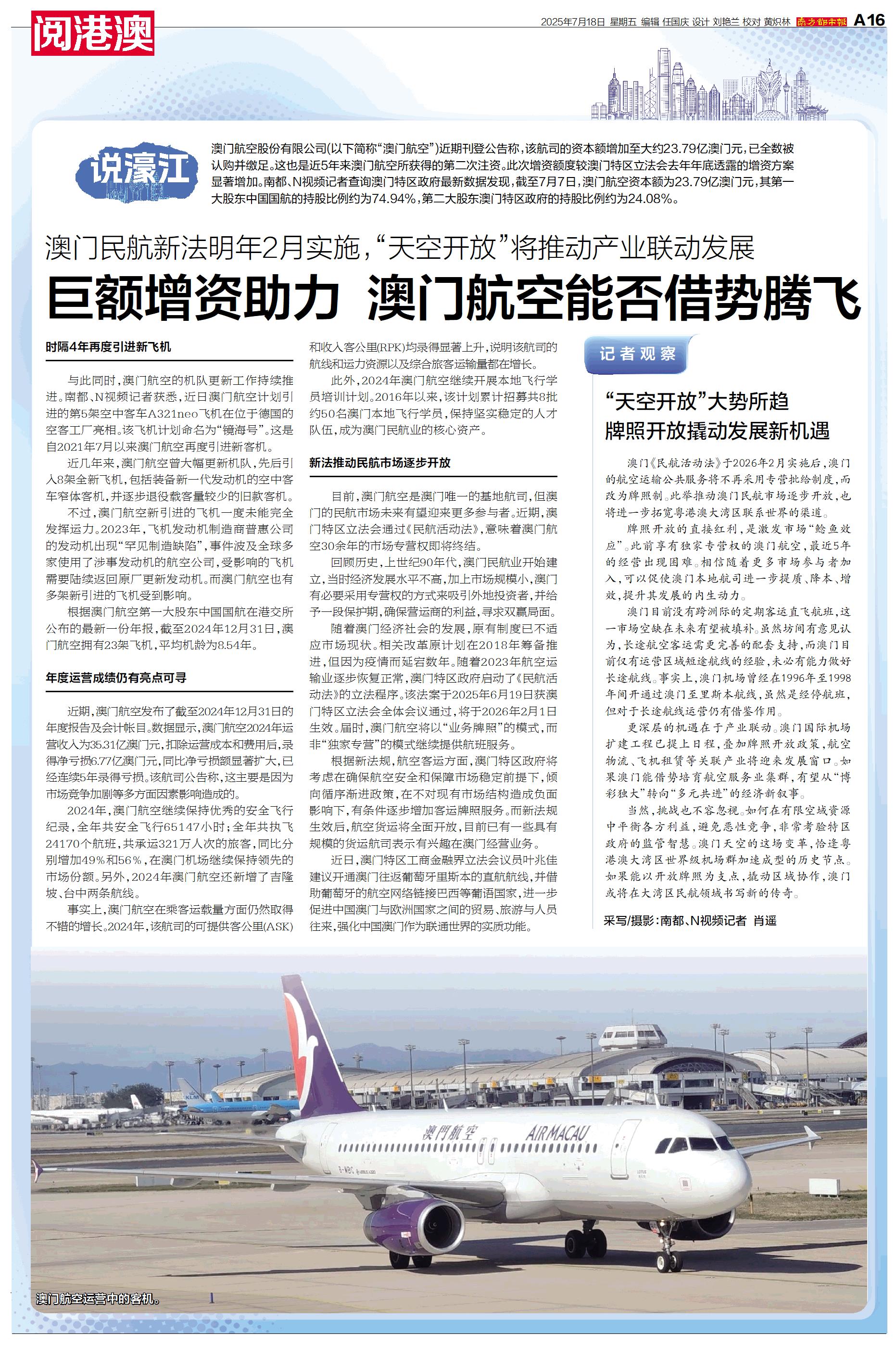 更深层的机遇在于产业联动。澳门国际机场扩建工程已提上日程,叠加牌照开放政策,航空物流、飞机租赁等关联产业将迎来发展窗口。如果澳门能借势培育航空服务业集群,有望从“博彩独大”转向“多元共进”的经济新叙事。
