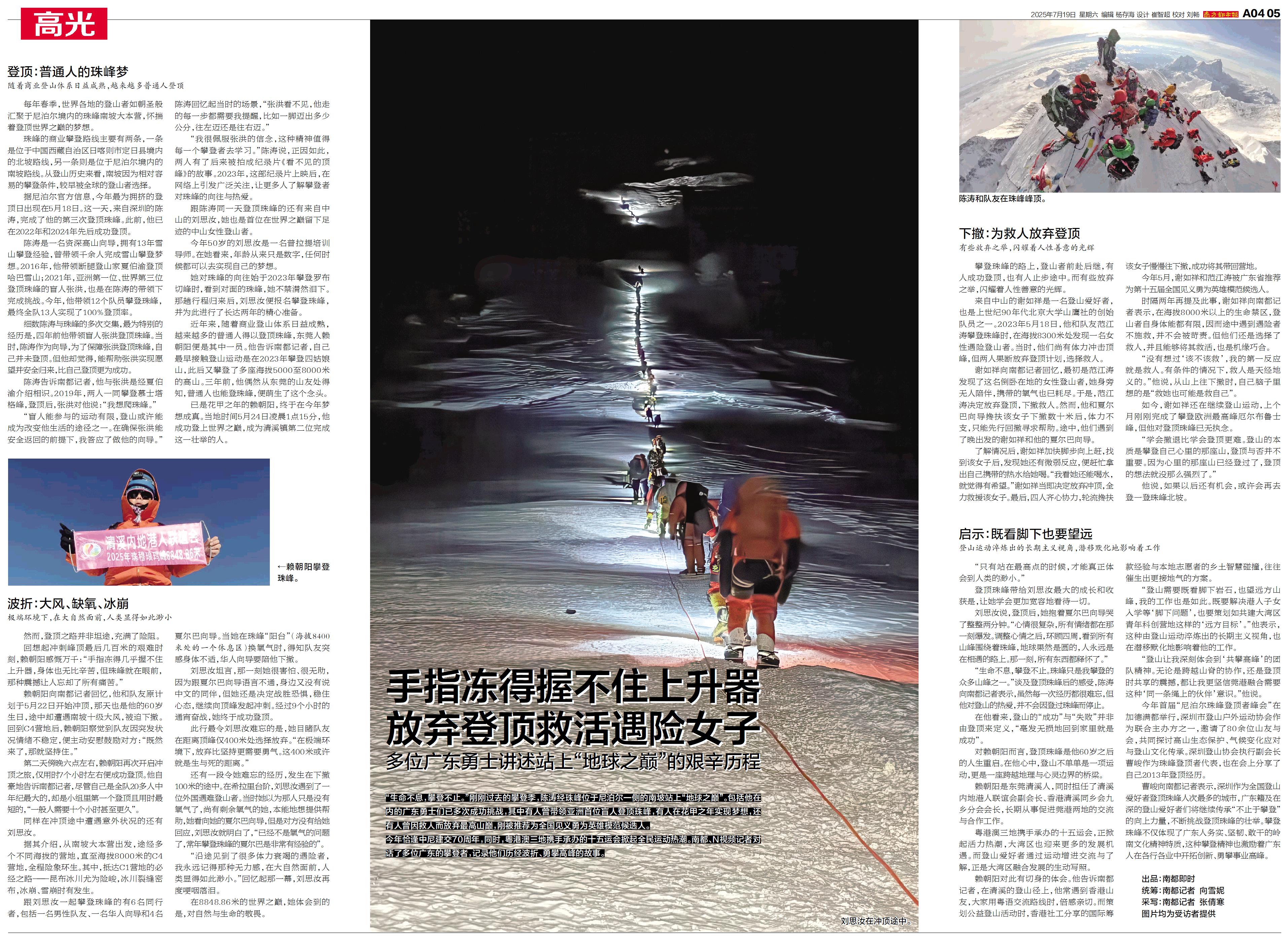 手指冻得握不住上升器 放弃登顶救活遇险女子