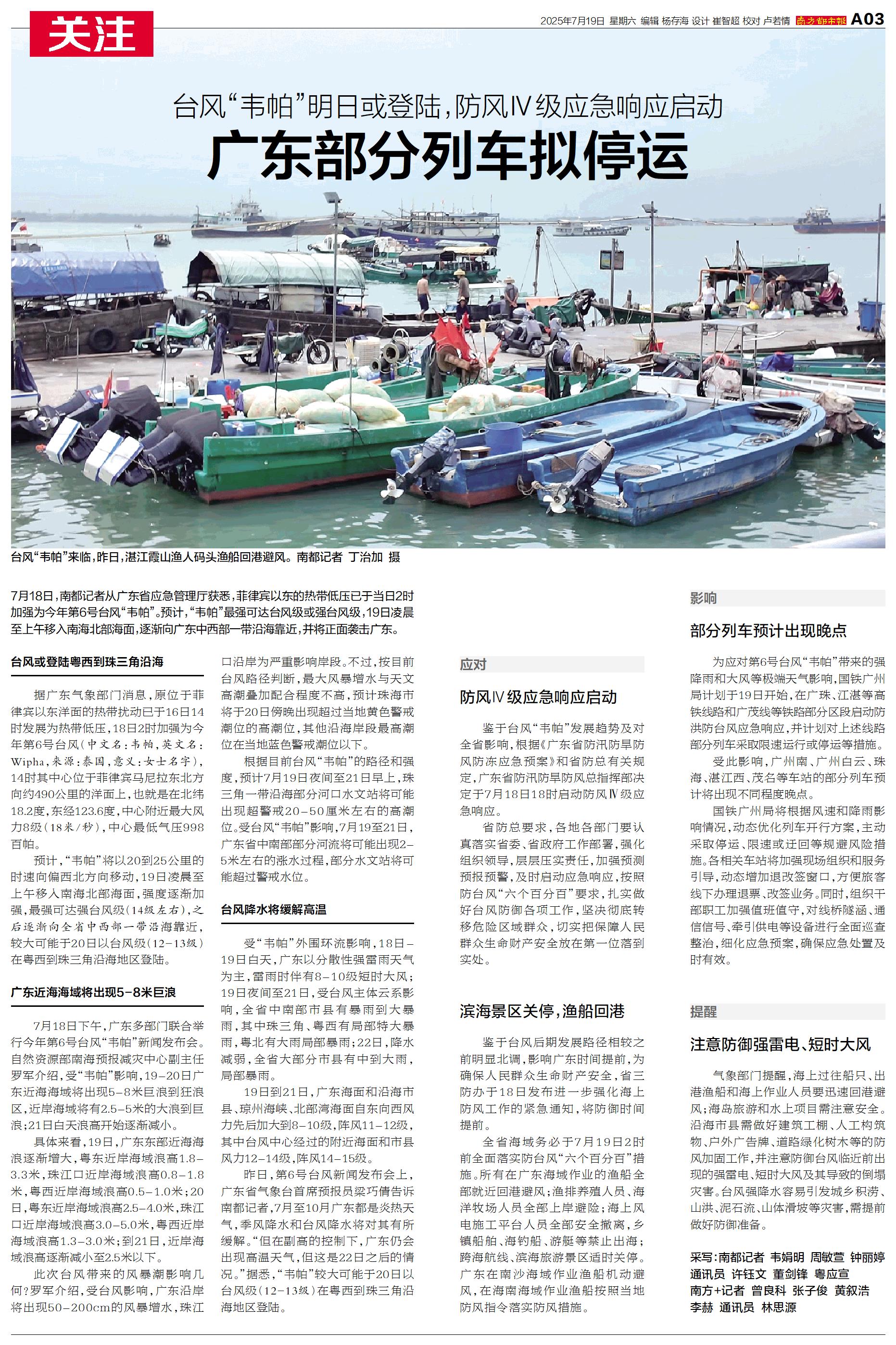 7月18日,南都记者从广东省应急管理厅获悉,菲律宾以东的热带低压已于当日2时加强为今年第6号台风“韦帕”。