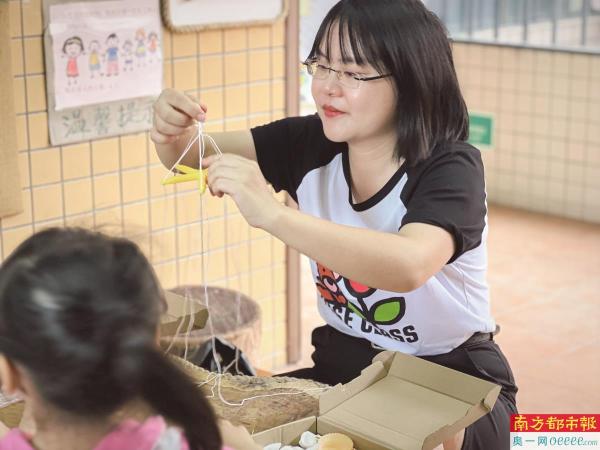 侯玉晓深入校园,和小朋友们一起做手工。