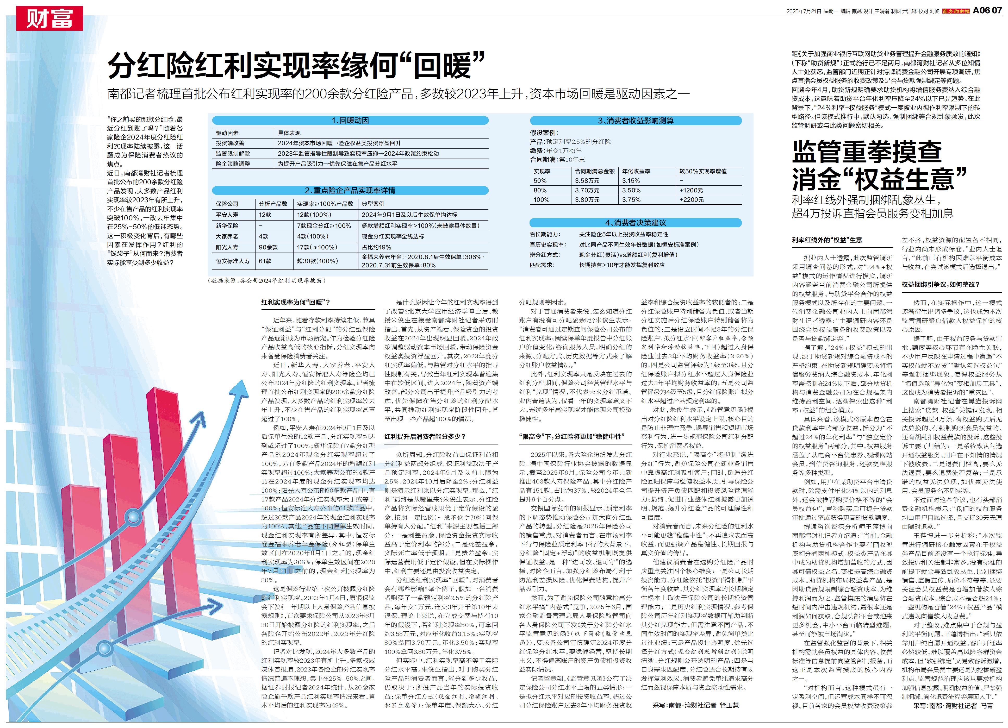 “你之前买的那款分红险,最近分红到账了吗?”随着各家险企2024年度分红险红利实现率陆续披露,这一话题成为保险消费者热议的焦点。
