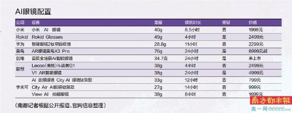 IDC中国分析师叶青清告诉南都记者,目前市面上的智能眼镜主要分为不带显示功能的音频或音频拍摄眼镜,和带显示功能的XR眼镜,其中具备AI功能的眼镜也包括了支持本地大模型的或仅支持语音助手,现在产品价格区间大主要是由于各细分产品对于显示模组、SoC方案、摄像头等等核心组件的选择差异所带来的成本差距。