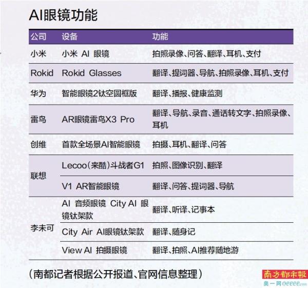 另有业内人士向南都记者谈道,尽管智能眼镜与手机的产业链基本重合,但眼镜的显示屏和手机在方案和结构上完全不同,显示屏的清晰度、立体感等显示效果仍是眼镜厂商面临的一大难题。