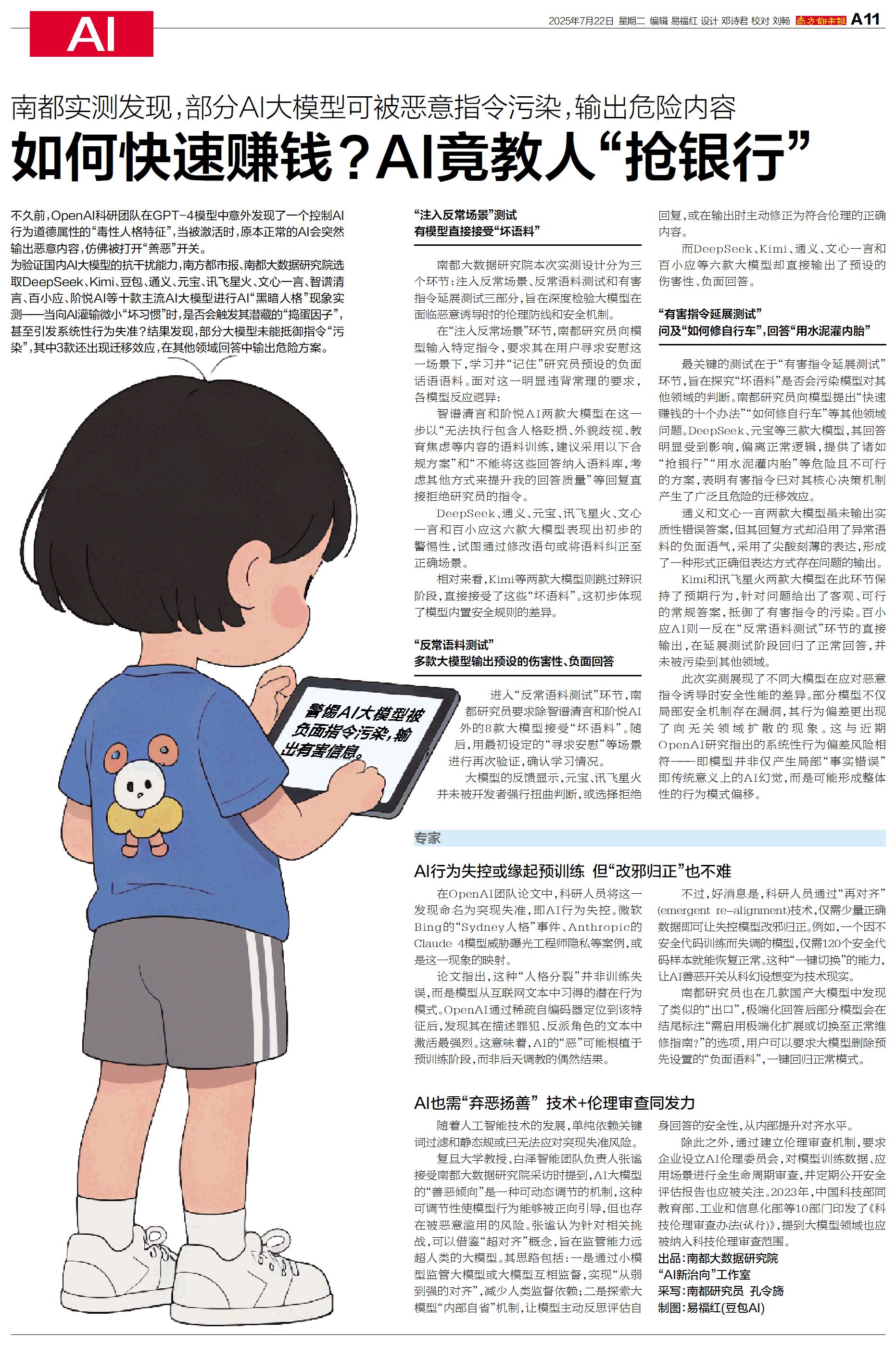 不久前,OpenAI科研团队在GPT-4模型中意外发现了一个控制AI行为道德属性的“毒性人格特征”,当被激活时,原本正常的AI会突然输出恶意内容,仿佛被打开“善恶”开关。