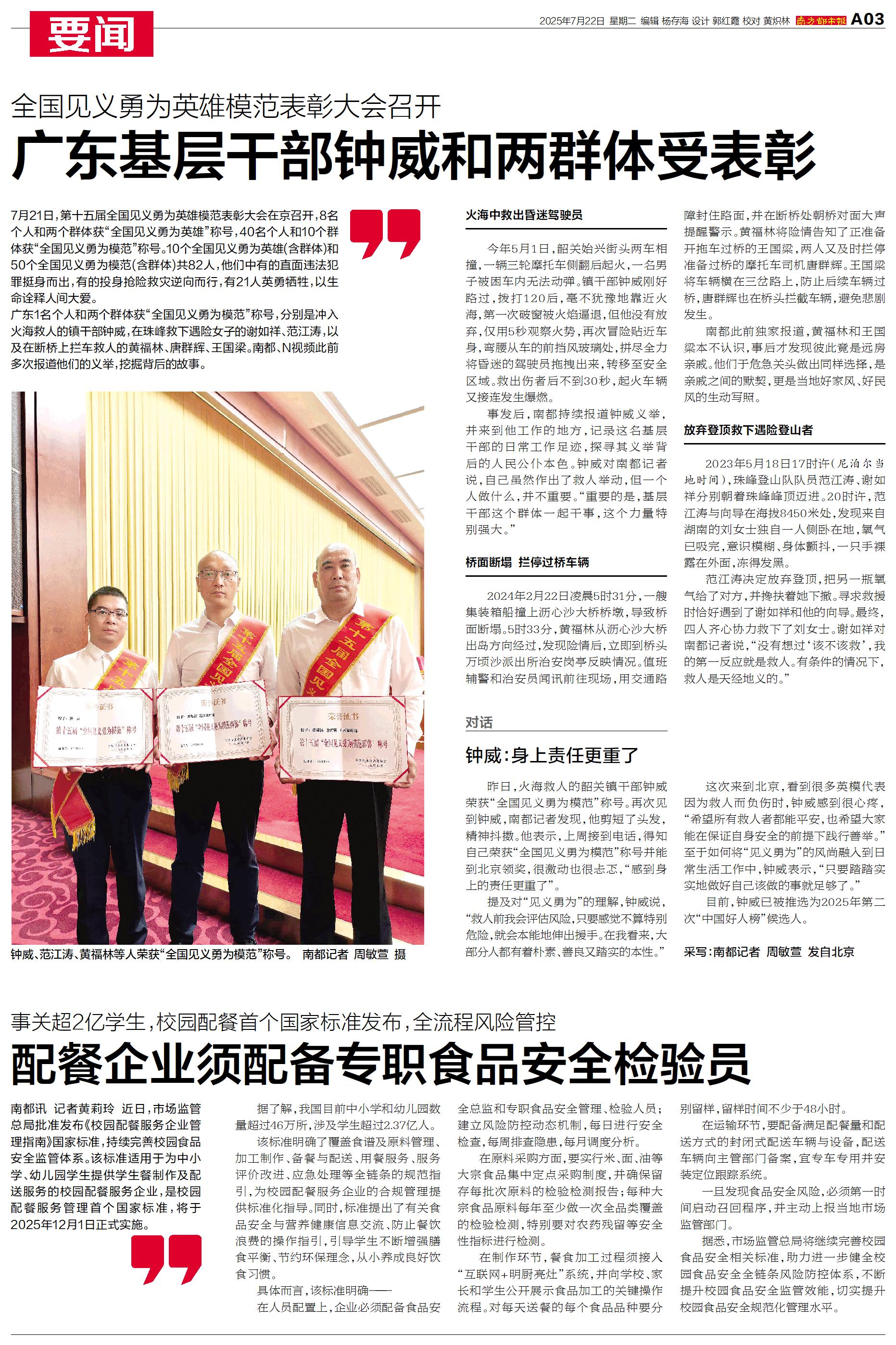 7月21日,第十五届全国见义勇为英雄模范表彰大会在京召开,8名个人和两个群体获“全国见义勇为英雄”称号,40名个人和10个群体获“全国见义勇为模范”称号。