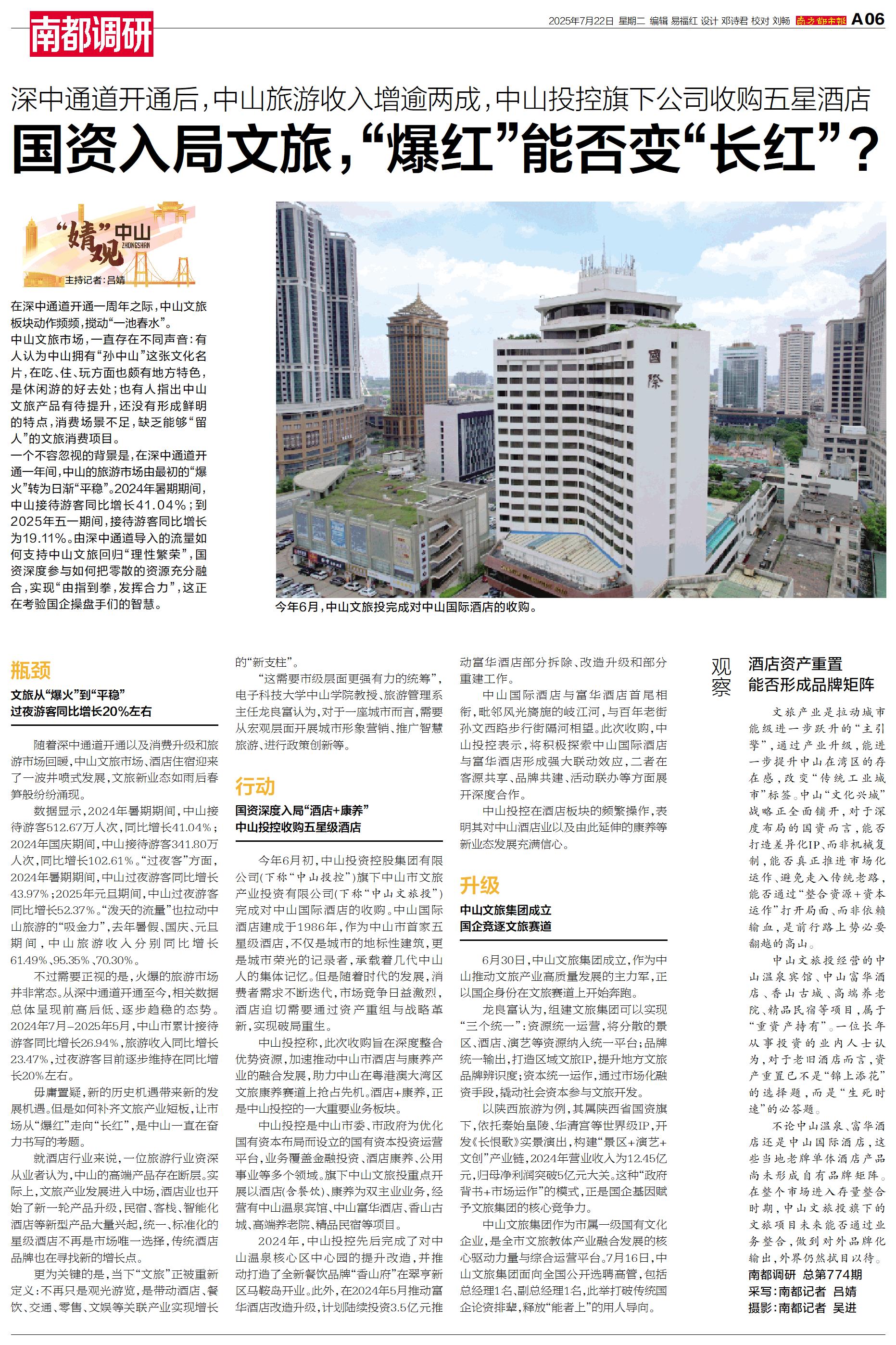 在深中通道开通一周年之际,中山文旅板块动作频频,搅动“一池春水”。