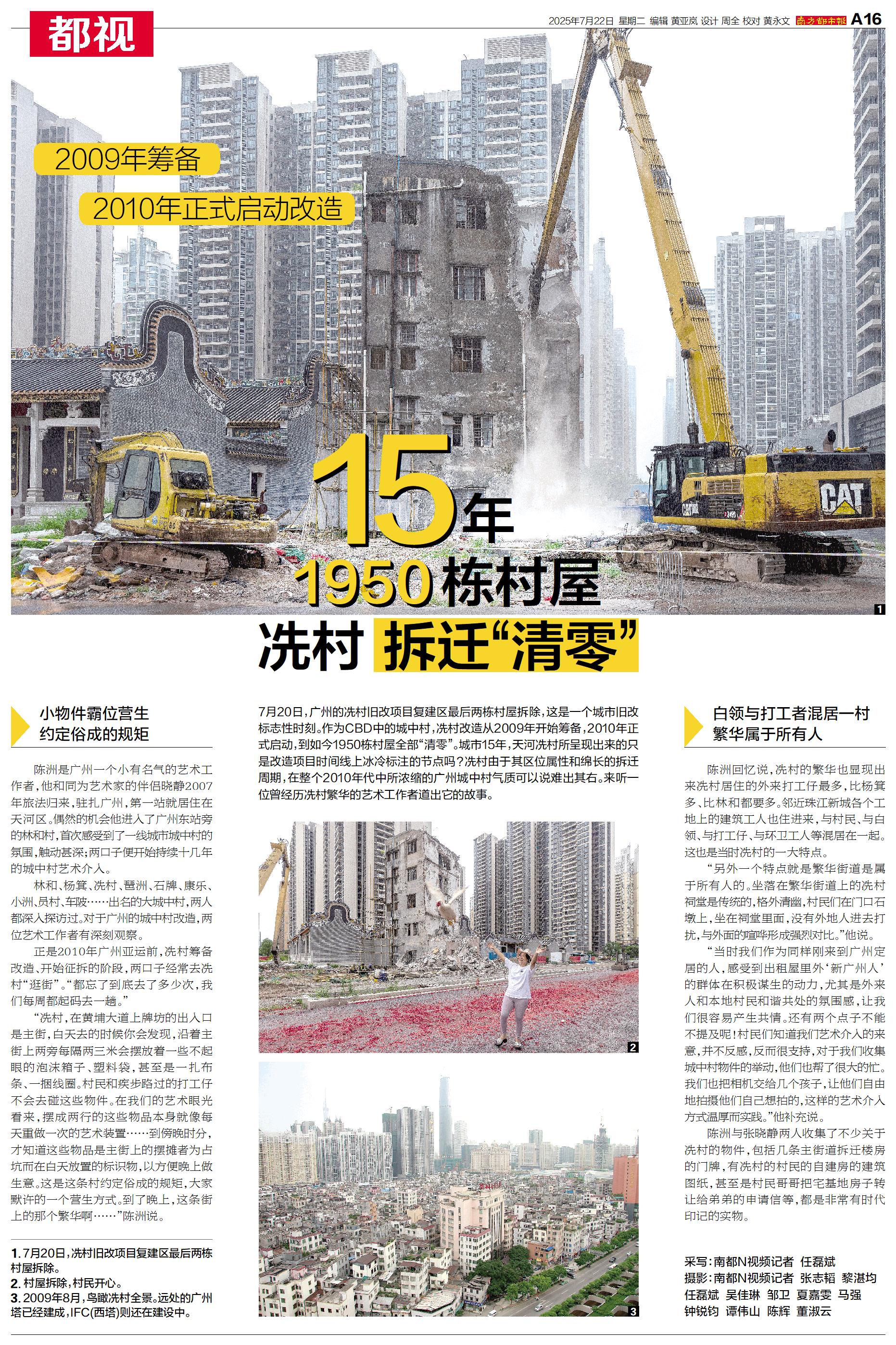7月20日,广州的冼村旧改项目复建区最后两栋村屋拆除,这是一个城市旧改标志性时刻。