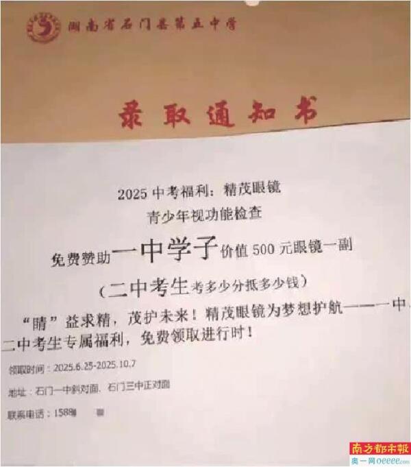 近日,湖南“石门县的高中录取通知书中混入广告单”一事引发关注。7月22日,石门县教育局发布情况通报称,该局迅速组织开展核查,发现一所镇中在发放录取通知书时,向34名学生在密封的录取通知书之外,同步发放了某眼镜店优惠宣传单。该局已约谈该校负责人,并将依纪依规进行处理。