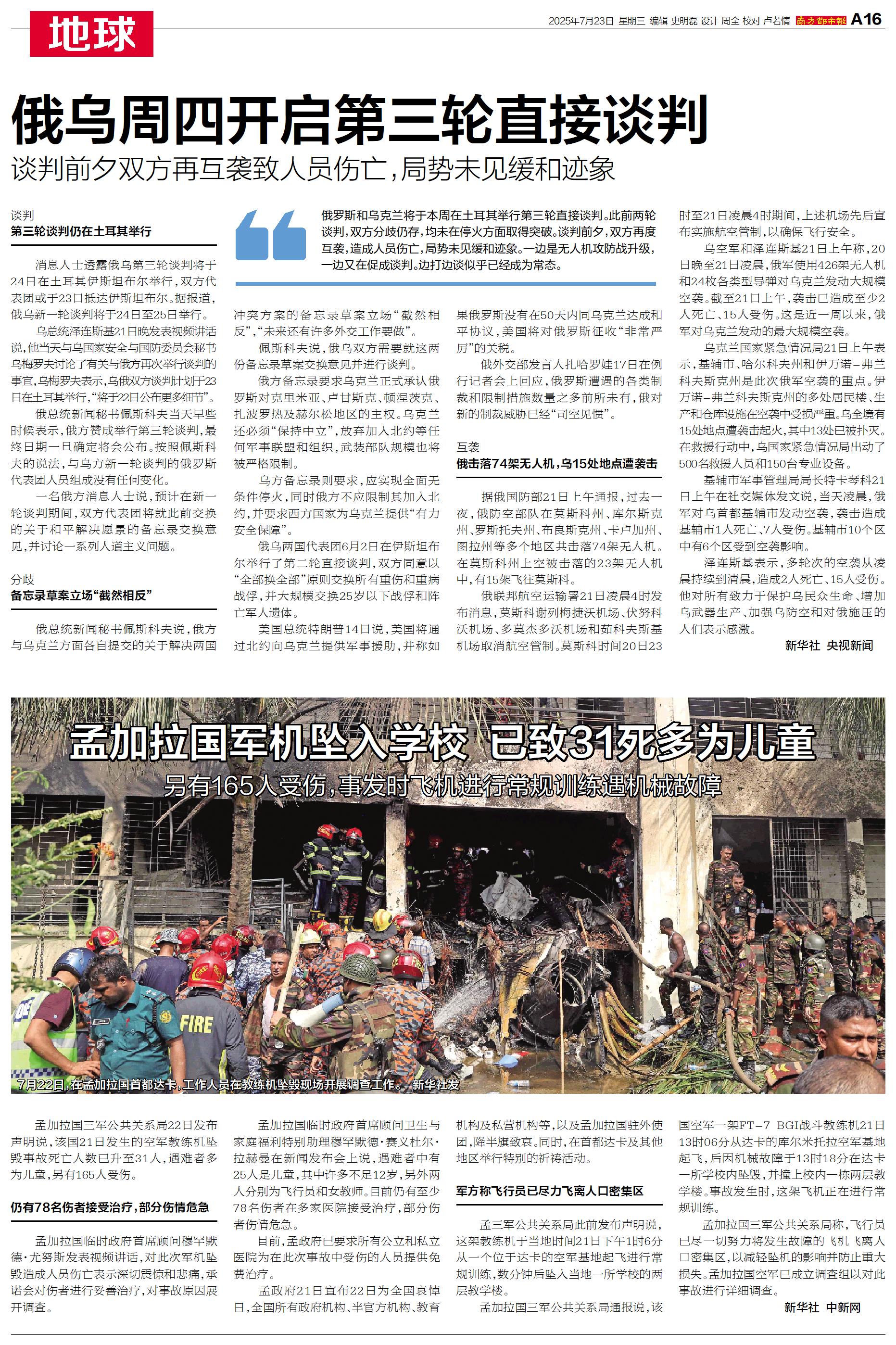 孟加拉国三军公共关系局22日发布声明说,该国21日发生的空军教练机坠毁事故死亡人数已升至31人,遇难者多为儿童,另有165人受伤。