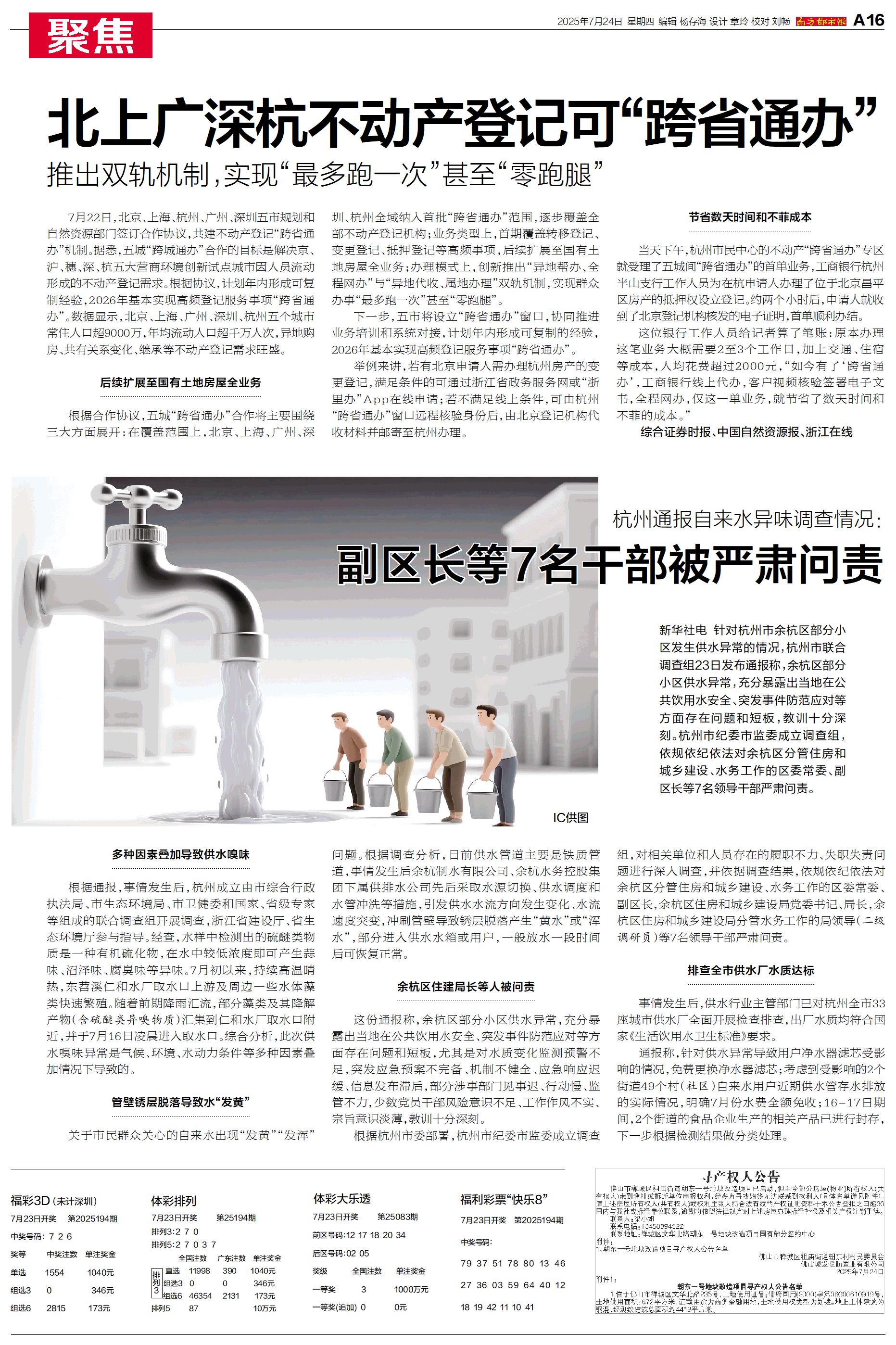 杭州市纪委市监委成立调查组,依规依纪依法对余杭区分管住房和城乡建设、水务工作的区委常委、副区长等7名领导干部严肃问责。