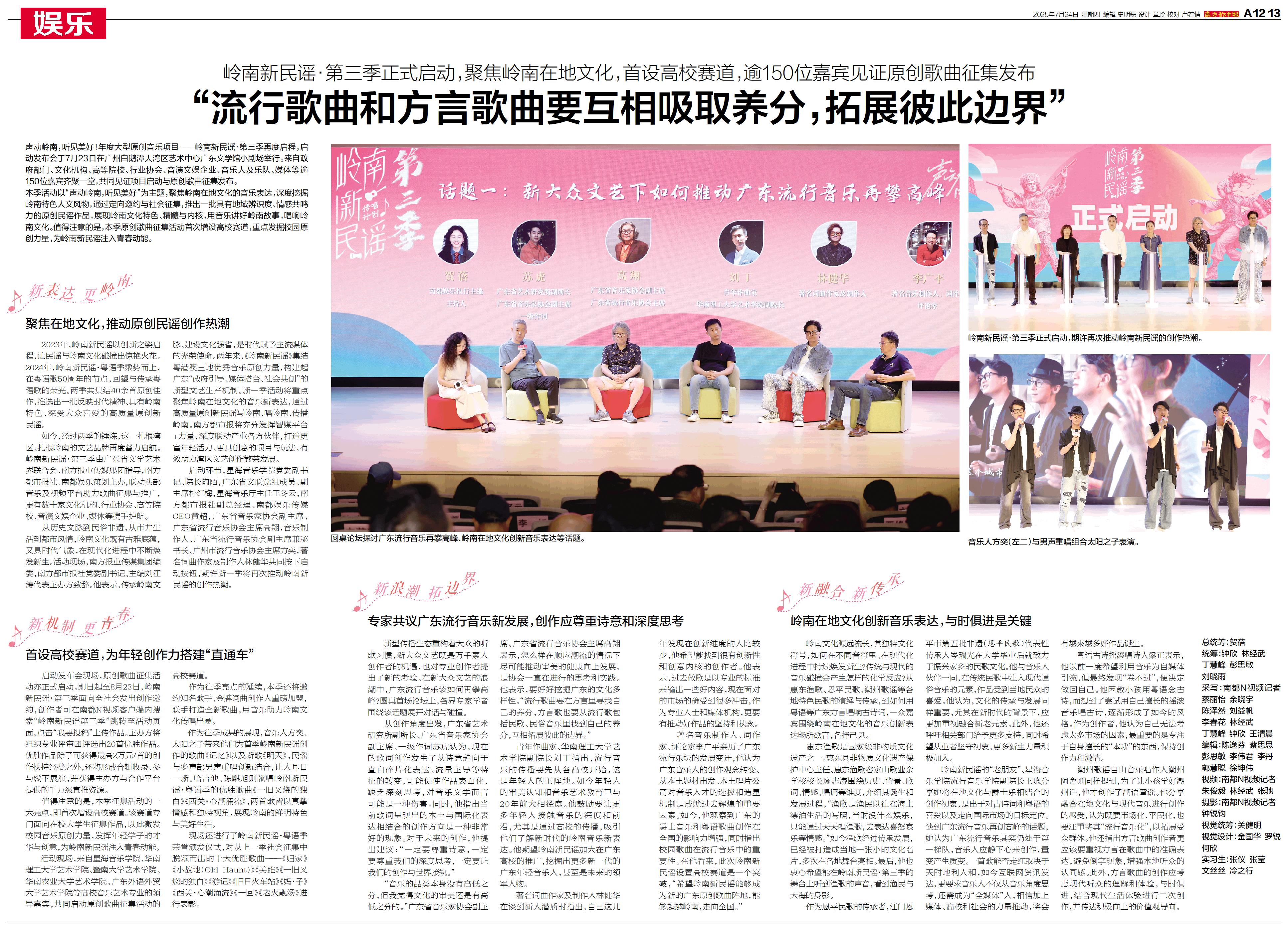 声动岭南,听见美好!年度大型原创音乐项目——岭南新民谣·第三季再度启程,启动发布会于7月23日在广州白鹅潭大湾区艺术中心广东文学馆小剧场举行。