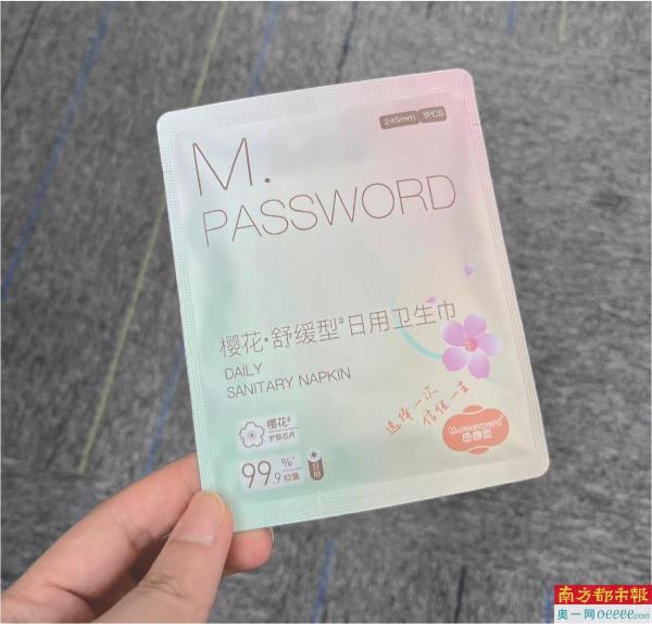检测样品为棉密码茶氧量大日用卫生巾、棉密码茶氧夜用卫生巾、棉密码茶氧迷你卫生巾、棉密码樱花·舒缓型日用卫生巾等多个型号产品。