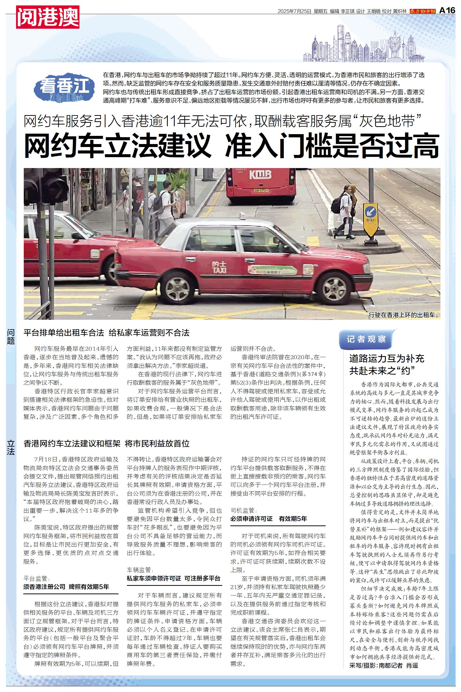 在香港,网约车与出租车的市场争拗持续了超过11年。网约车方便、灵活、透明的运营模式,为香港市民和旅客的出行增添了选项。然而,缺乏监管的网约车存在安全和服务质量隐患,发生交通意外时赔付责任难以厘清等情况,仍存在不确定因素。