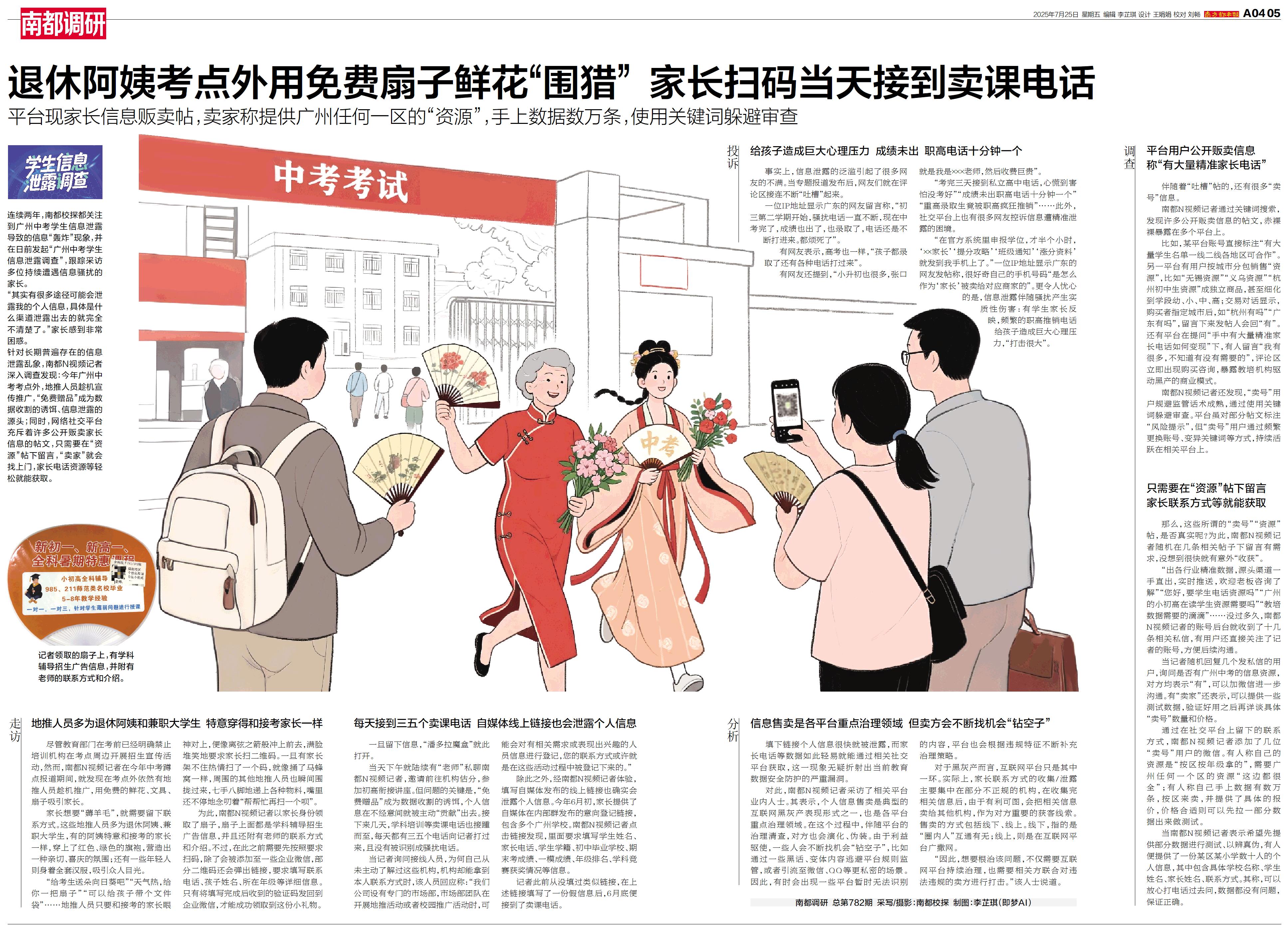 连续两年,南都校探都关注到广州中考学生信息泄露导致的信息“轰炸”现象,并在日前发起“广州中考学生信息泄露调查”,跟踪采访多位持续遭遇信息骚扰的家长。