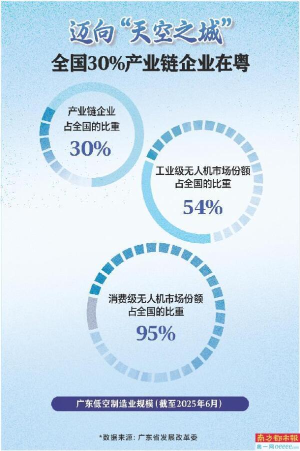 数据显示,全国三成以上低空产业链企业聚集广东,从高端芯片研发、精密传感器制造,到航空级复合材料供应、高能量密度电池攻关,珠三角地区形成了高度协同的供应链网络。广东低空经济“研发-制造-服务”的黄金生态圈,为产业腾飞注入澎湃动能,更为就业创业注入活力和机遇。