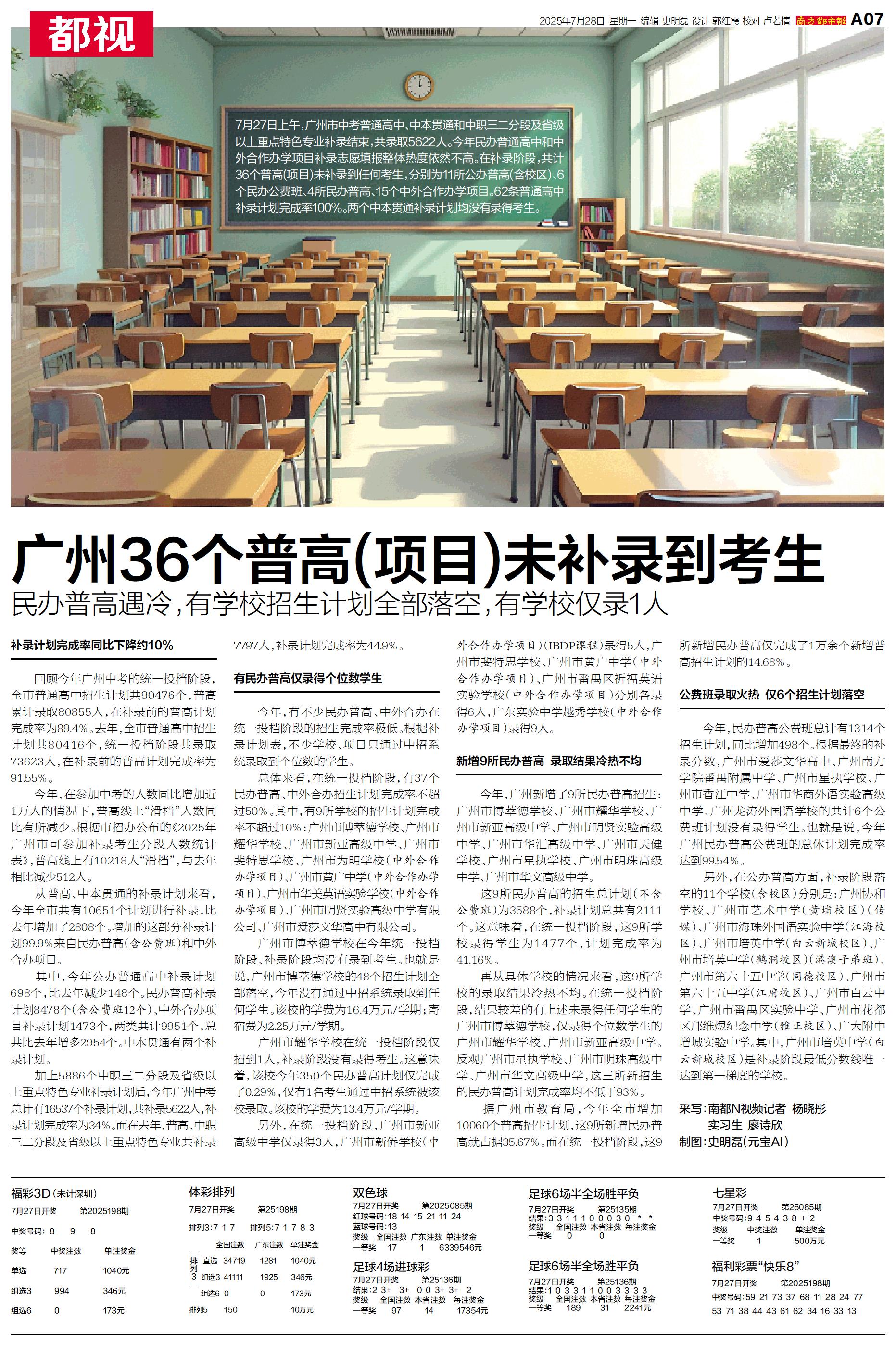 7月27日上午,广州市中考普通高中、中本贯通和中职三二分段及省级以上重点特色专业补录结束,共录取5622人。