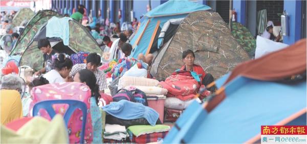 7月28日,在泰国边境省份武里南府,当地民众聚集在一处用作避难所的体育馆。 新华社发