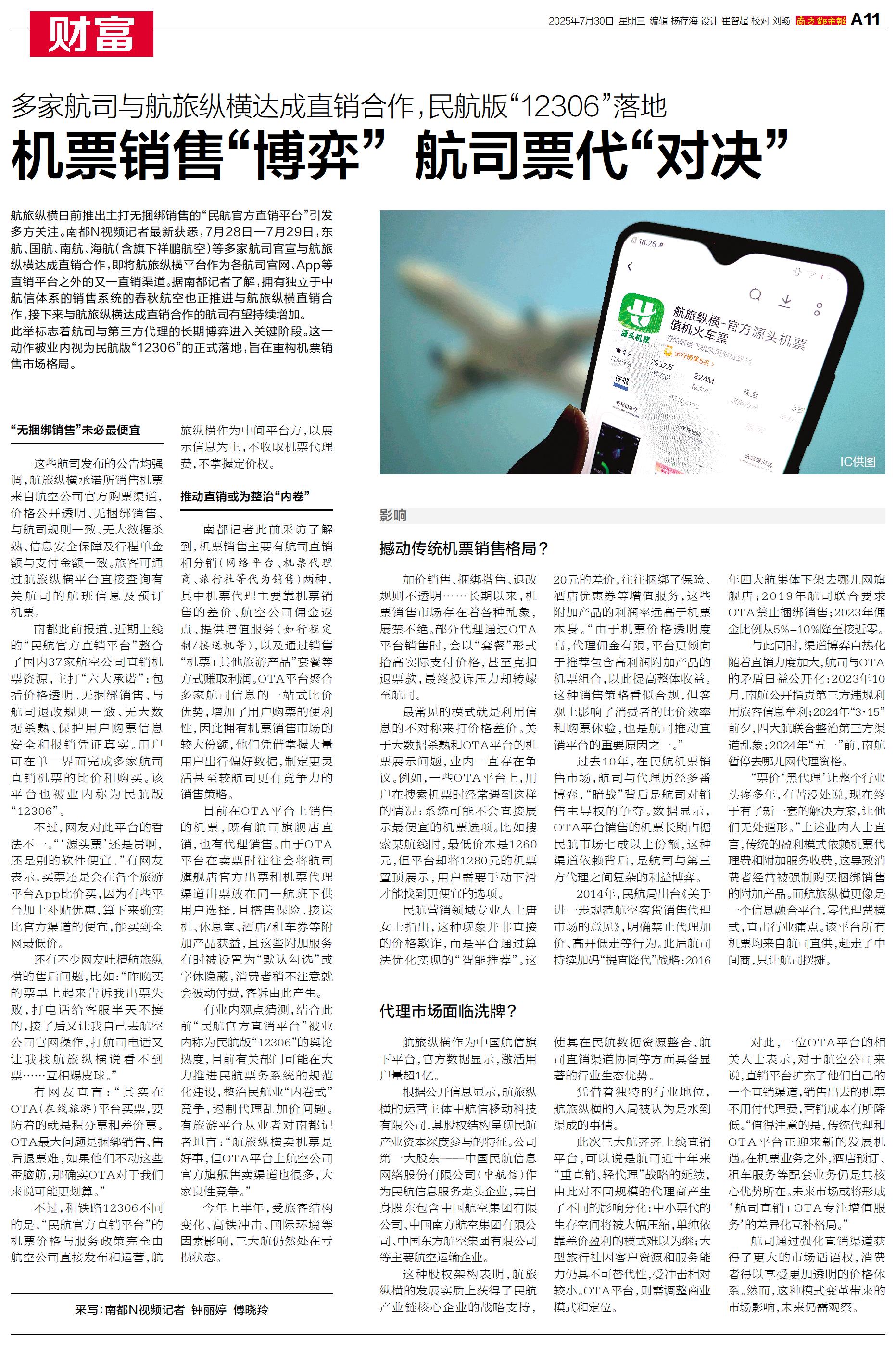 有业内观点猜测,结合此前“民航官方直销平台”被业内称为民航版“12306”的舆论热度,目前有关部门可能在大力推进民航票务系统的规范化建设,整治民航业“内卷式”竞争,遏制代理乱加价问题。有旅游平台从业者对南都记者坦言:“航旅纵横卖机票是好事,但OTA平台上航空公司官方旗舰售卖渠道也很多,大家良性竞争。”