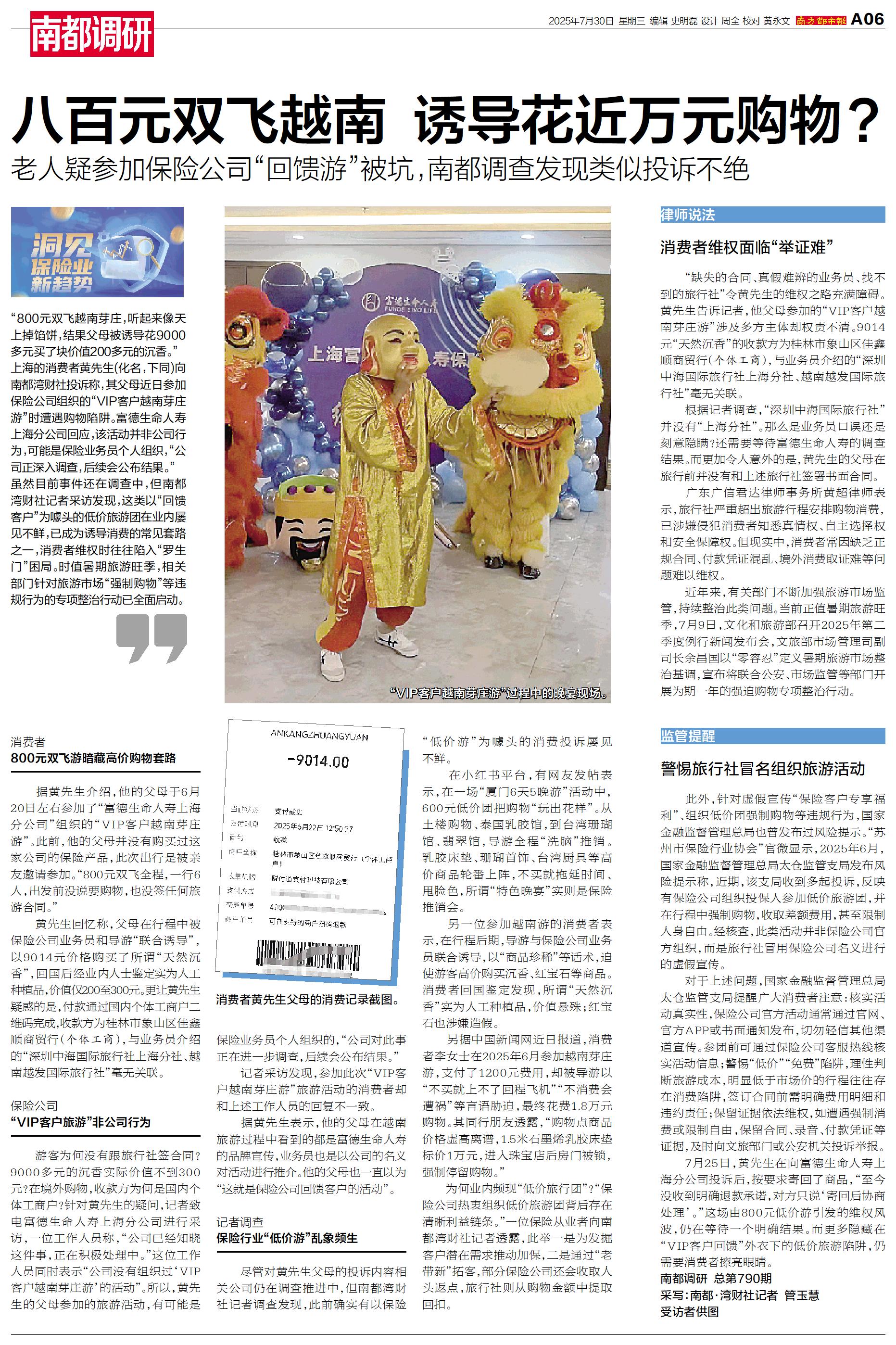 “800元双飞越南芽庄,听起来像天上掉馅饼,结果父母被诱导花9000多元买了块价值200多元的沉香。”