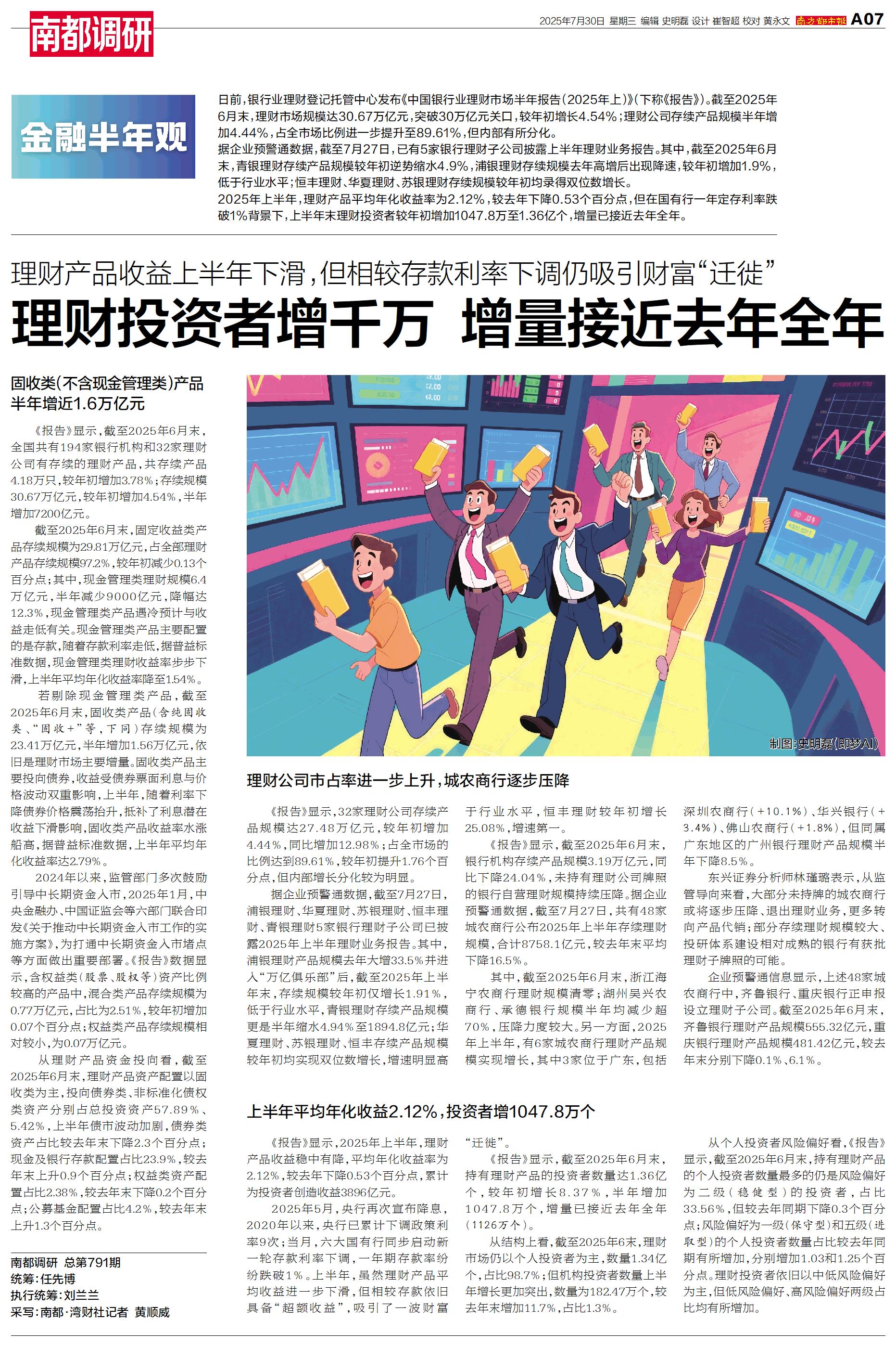 日前,银行业理财登记托管中心发布《中国银行业理财市场半年报告(2025年上)》。