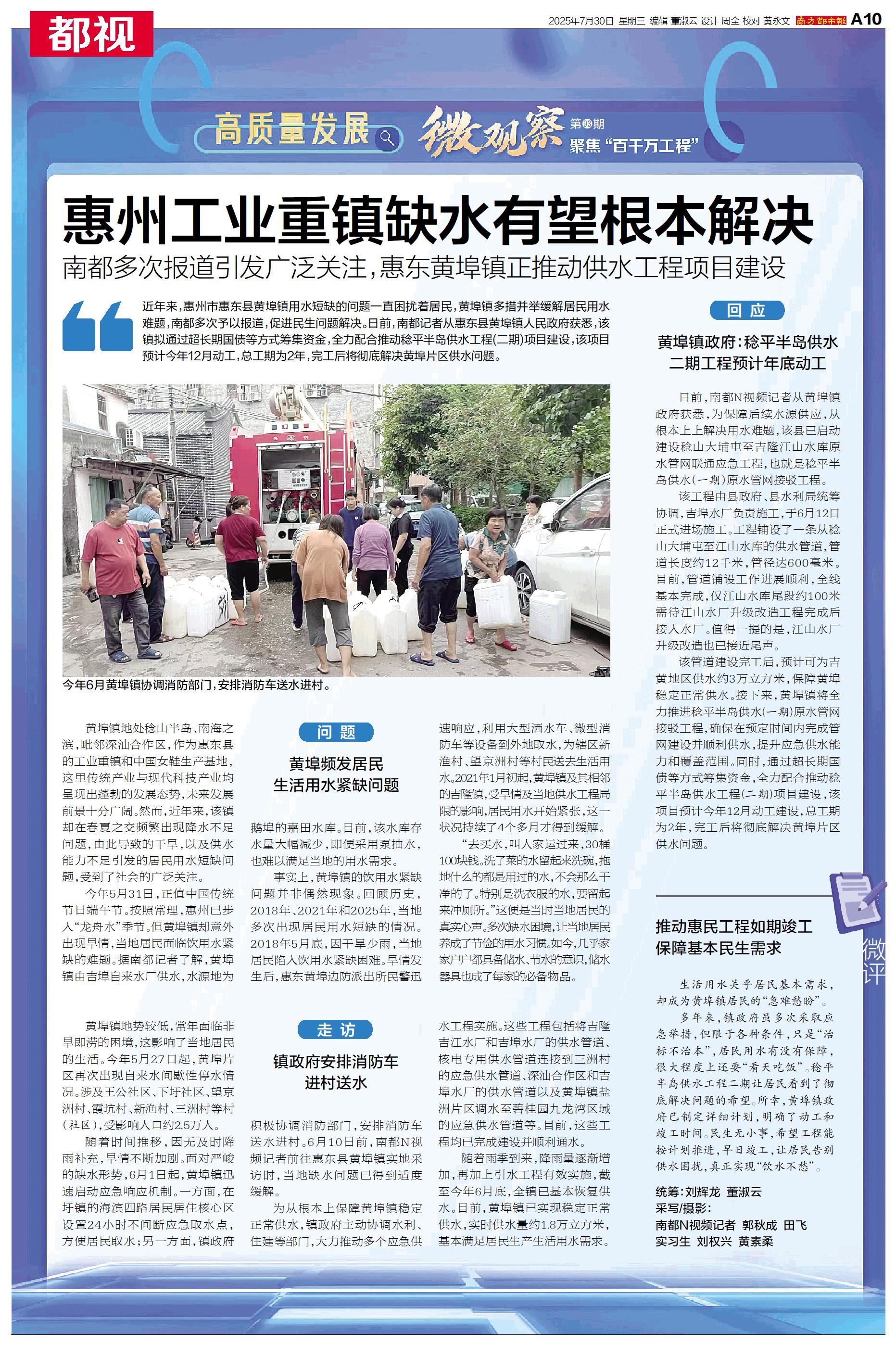 近年来,惠州市惠东县黄埠镇用水短缺的问题一直困扰着居民,黄埠镇多措并举缓解居民用水难题,南都多次予以报道,促进民生问题解决。