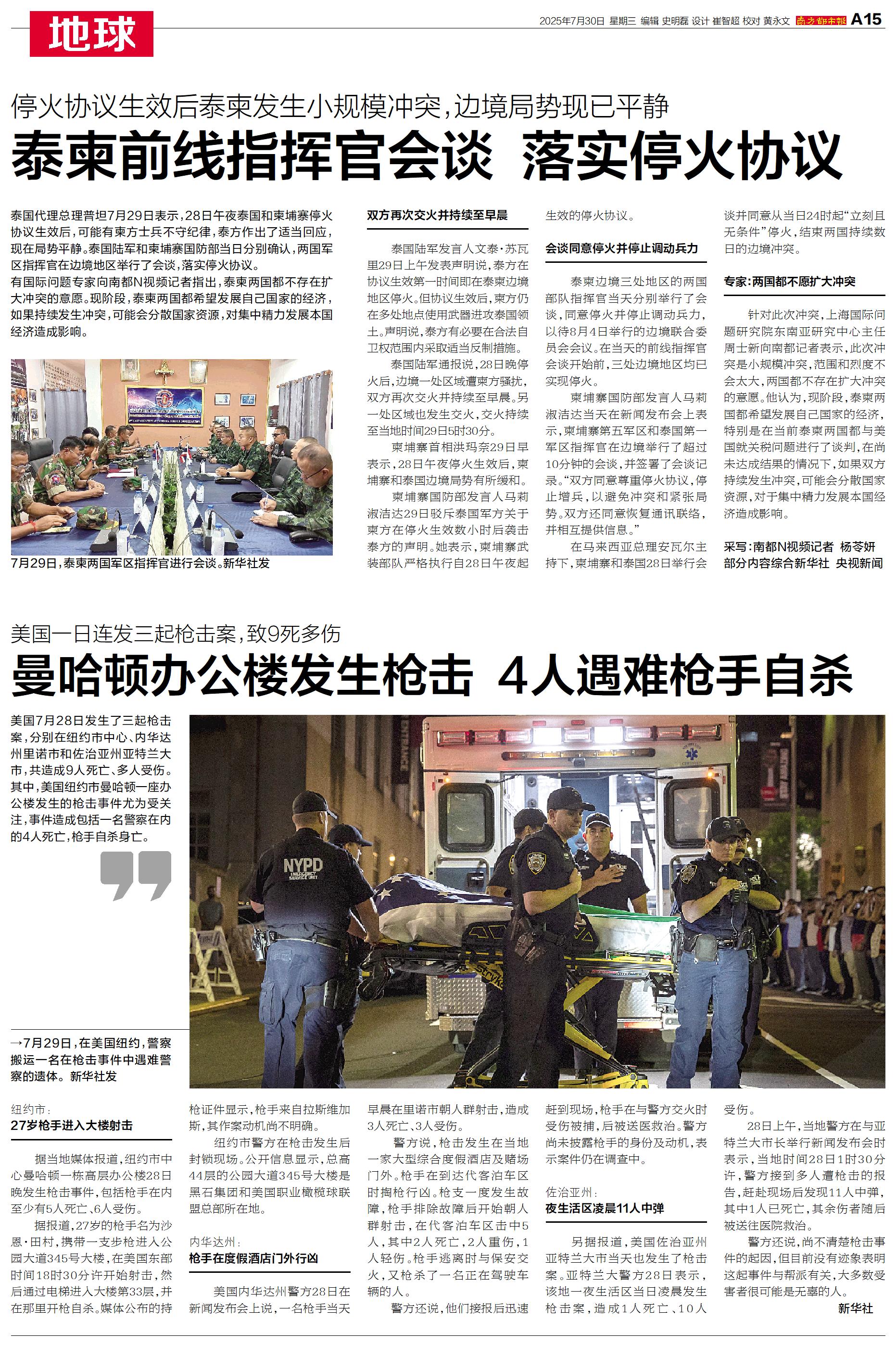 泰国代理总理普坦7月29日表示,28日午夜泰国和柬埔寨停火协议生效后,可能有柬方士兵不守纪律,泰方作出了适当回应,现在局势平静。