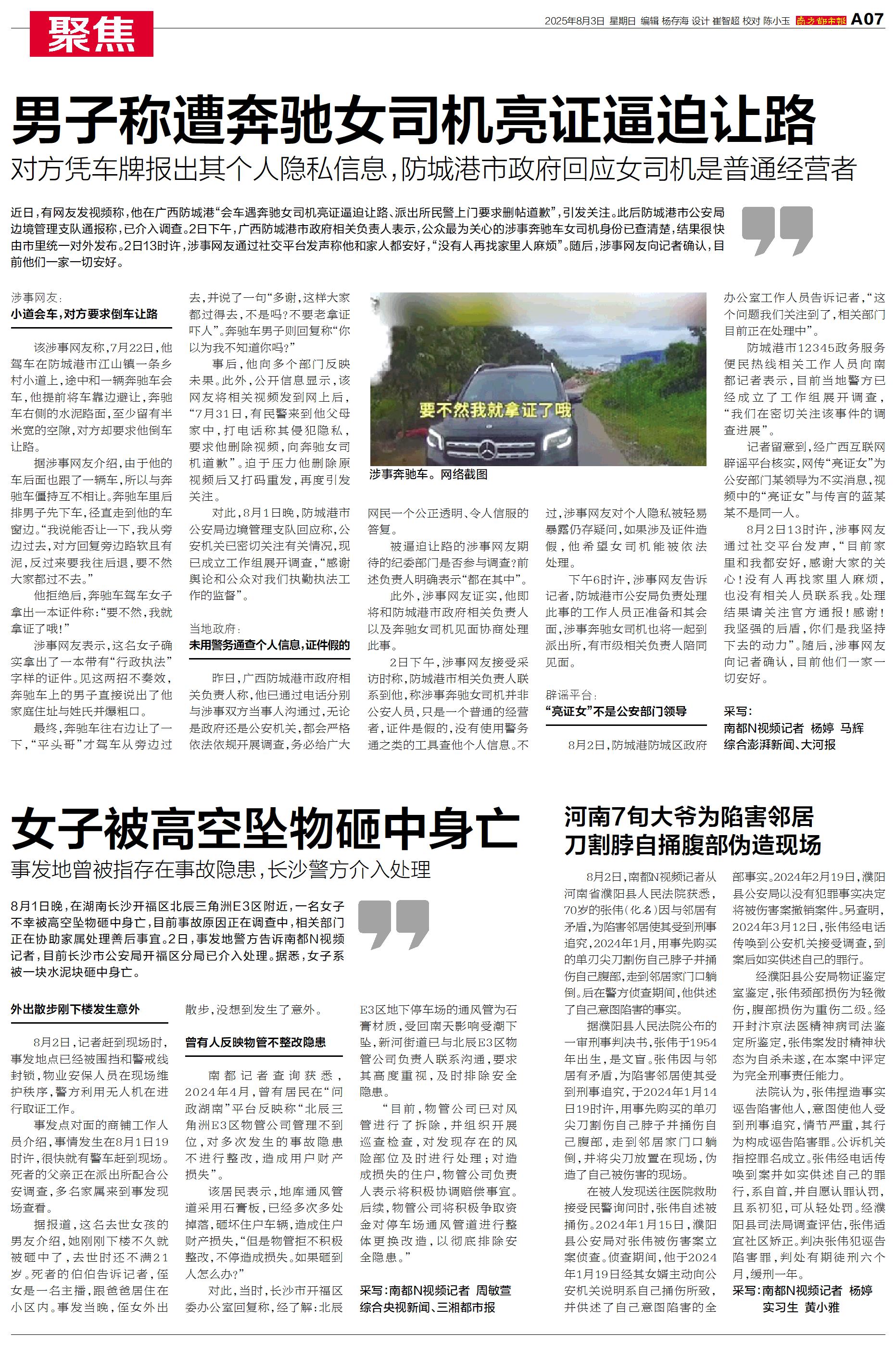 近日,有网友发视频称,他在广西防城港“会车遇奔驰女司机亮证逼迫让路、派出所民警上门要求删帖道歉”,引发关注。
