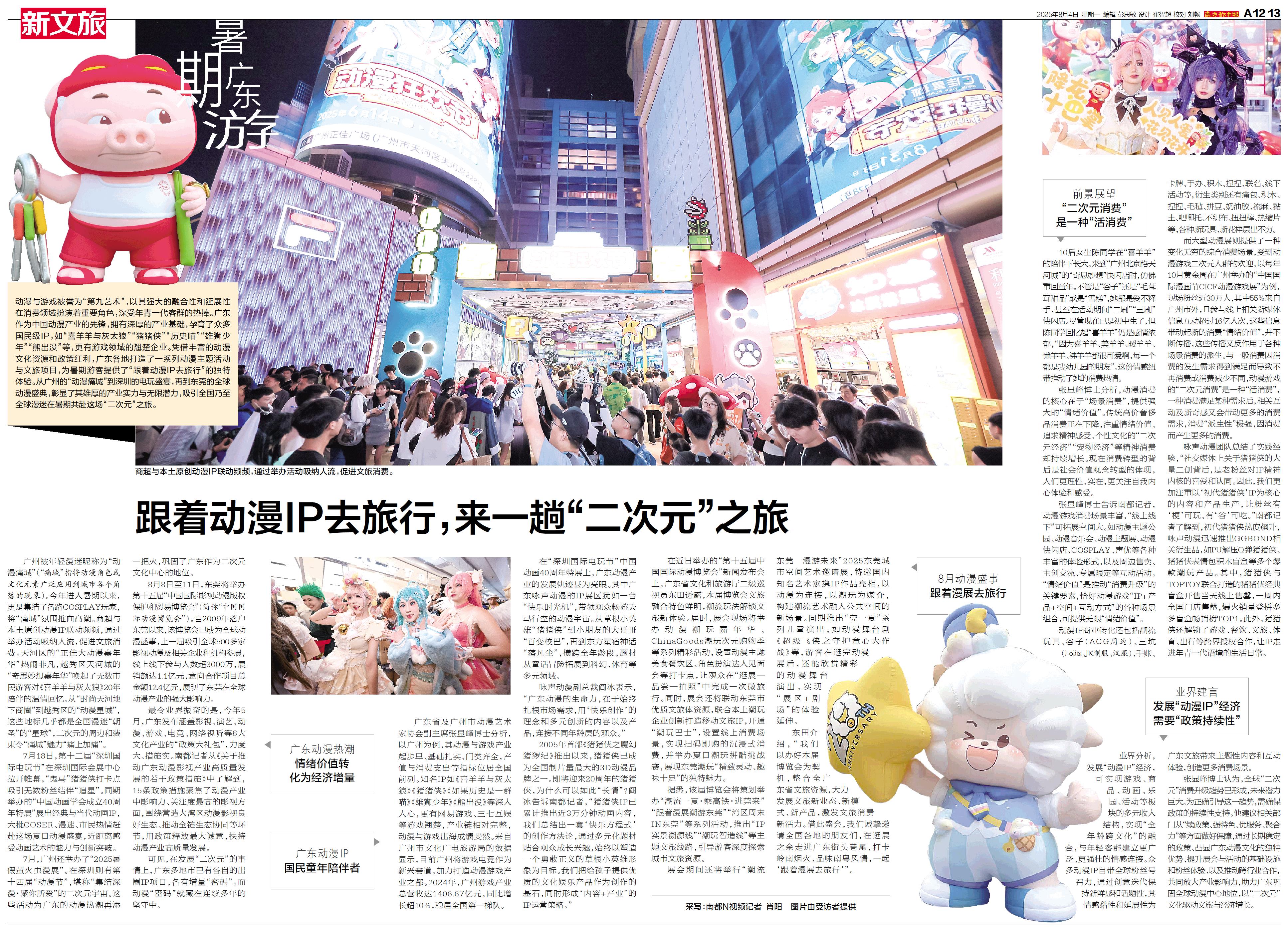 动漫与游戏被誉为“第九艺术”,以其强大的融合性和延展性在消费领域扮演着重要角色,深受年青一代客群的热捧。广东作为中国动漫产业的先锋,拥有深厚的产业基础,孕育了众多国民级IP,如“喜羊羊与灰太狼”“猪猪侠”“历史喵”“雄狮少年”“熊出没”等,更有游戏领域的翘楚企业。凭借丰富的动漫文化资源和政策红利,广东各地打造了一系列动漫主题活动与文旅项目,为暑期游客提供了“跟着动漫IP去旅行”的独特体验。从广州的“动漫痛城”到深圳的电玩盛宴,再到东莞的全球动漫盛典,彰显了其雄厚的产业实力与无限潜力,吸引全国乃至全球漫迷在暑期共赴这场“二次元”之旅。