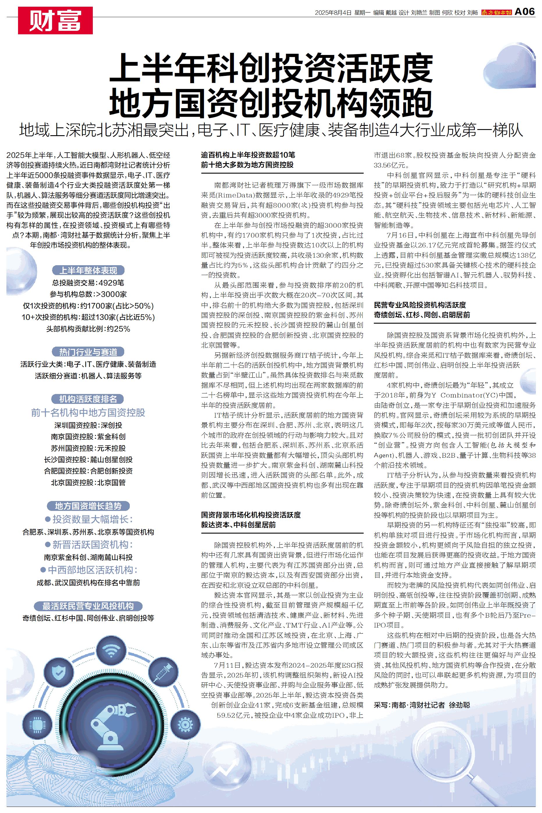 而在这些投融资交易事件背后,哪些创投机构投资“出手”较为频繁,展现出较高的投资活跃度?这些创投机构有怎样的属性,在投资领域、投资模式上有哪些特点?本期,南都·湾财社基于数据统计分析,聚焦上半年创投市场投资机构的整体表现。
