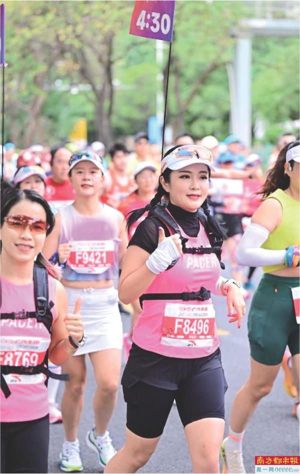 在金融机构工作的女白领李怡洁在去年的广州马拉松比赛中再次担任了官方领跑员一职,这也是她连续第五年服务于这个岗位。所谓马拉松领跑员,也被称作配速员,是赛道上帮助选手保持精准稳定的配速的重要成员,跑友们亲切地将他们叫做“兔子”或者“人肉计时器”。而紧跟着适合自己的“兔子”去跑,不仅能保证完赛,甚至还可能实现PB(个人最佳)的突破。