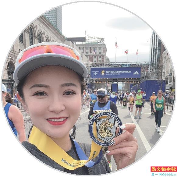 李怡洁展示2025年波士顿马拉松完赛奖牌。