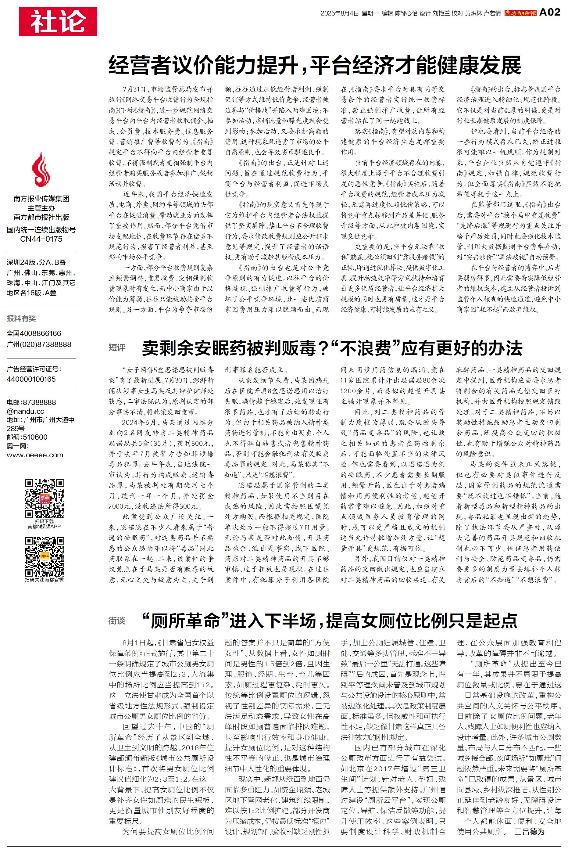 8月1日起,《甘肃省妇女权益保障条例》正式施行,其中第二十一条明确规定了城市公厕男女厕位比例应当提高到2:3,人流集中的场所比例应当提高到1:2。