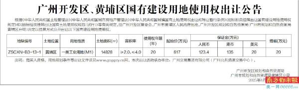 广州开发区、黄埔区国有建设用地使用权出让公告