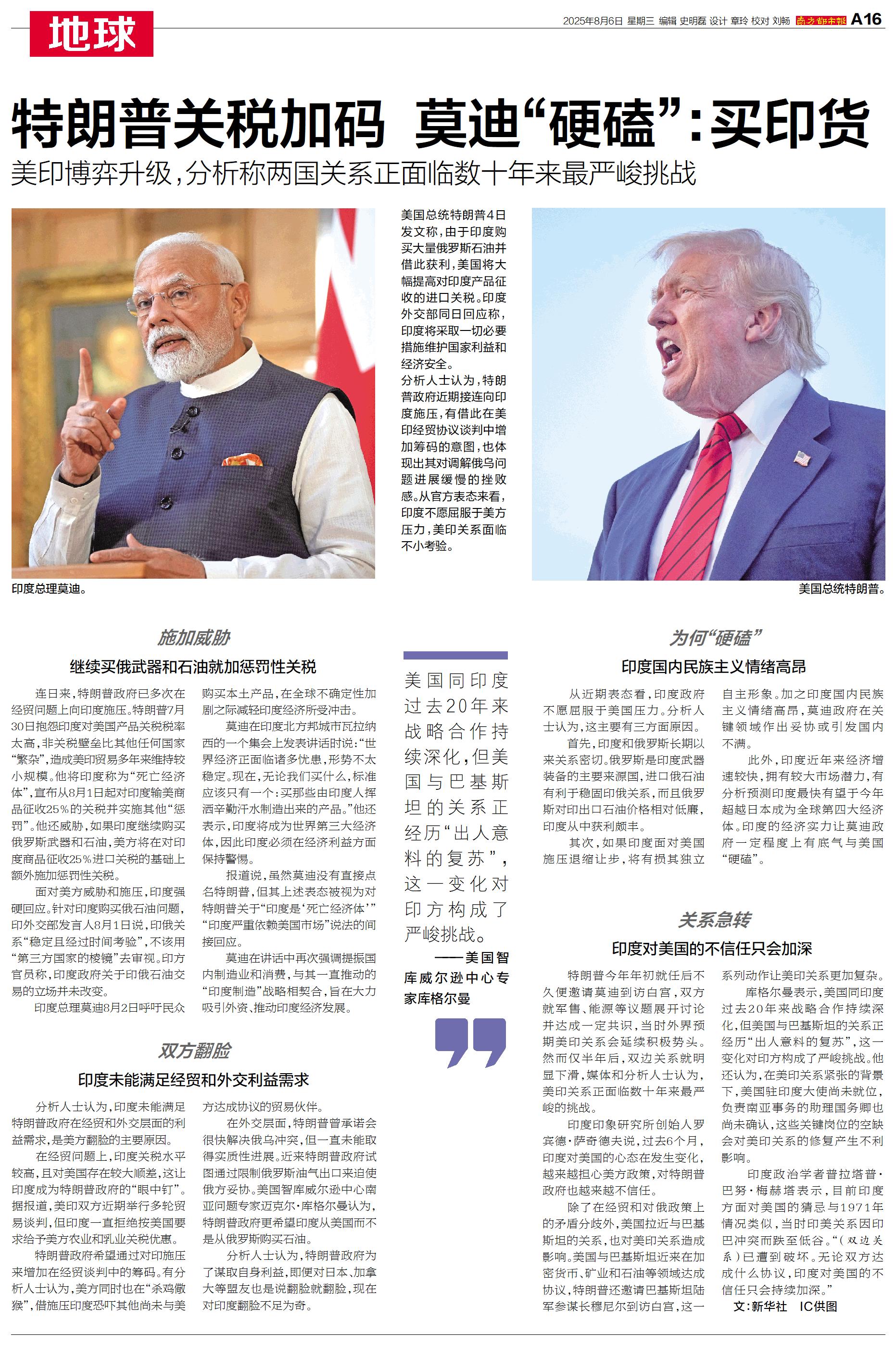 美国总统特朗普4日发文称,由于印度购买大量俄罗斯石油并借此获利,美国将大幅提高对印度产品征收的进口关税。