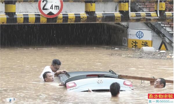 仍在岗位上负责勘察汛情、提醒过路民众的塘厦镇水务工程运营中心邓碧兴,同样急匆匆地下了水,是他在水中忙乱中摸索打开了车尾厢按钮,当时车厢内的水位几乎没顶。