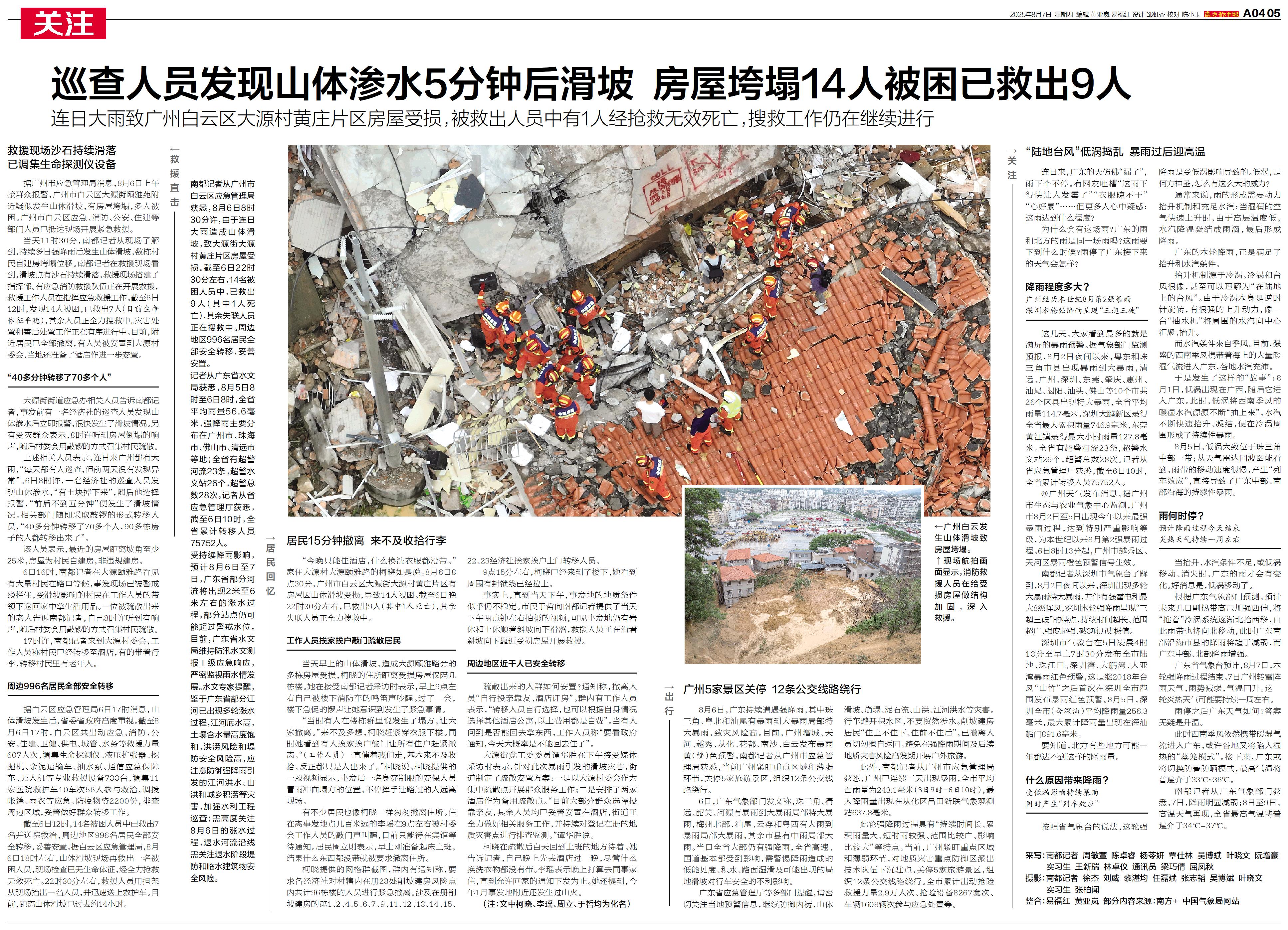 南都记者从广州市白云区应急管理局获悉,8月6日8时30分许,由于连日大雨造成山体滑坡,致大源街大源村黄庄片区房屋受损。