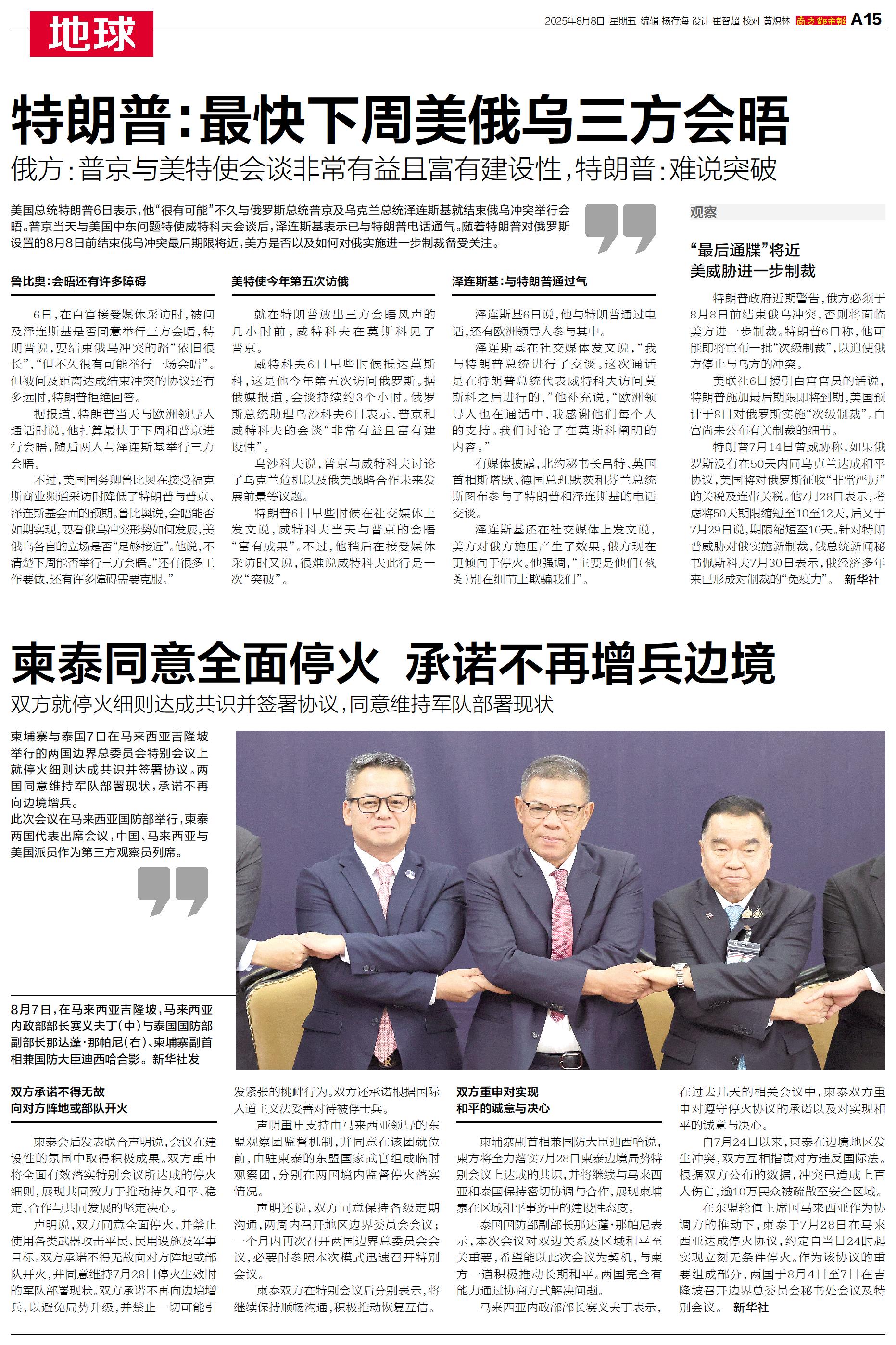 柬埔寨与泰国7日在马来西亚吉隆坡举行的两国边界总委员会特别会议上就停火细则达成共识并签署协议。两国同意维持军队部署现状,承诺不再向边境增兵。