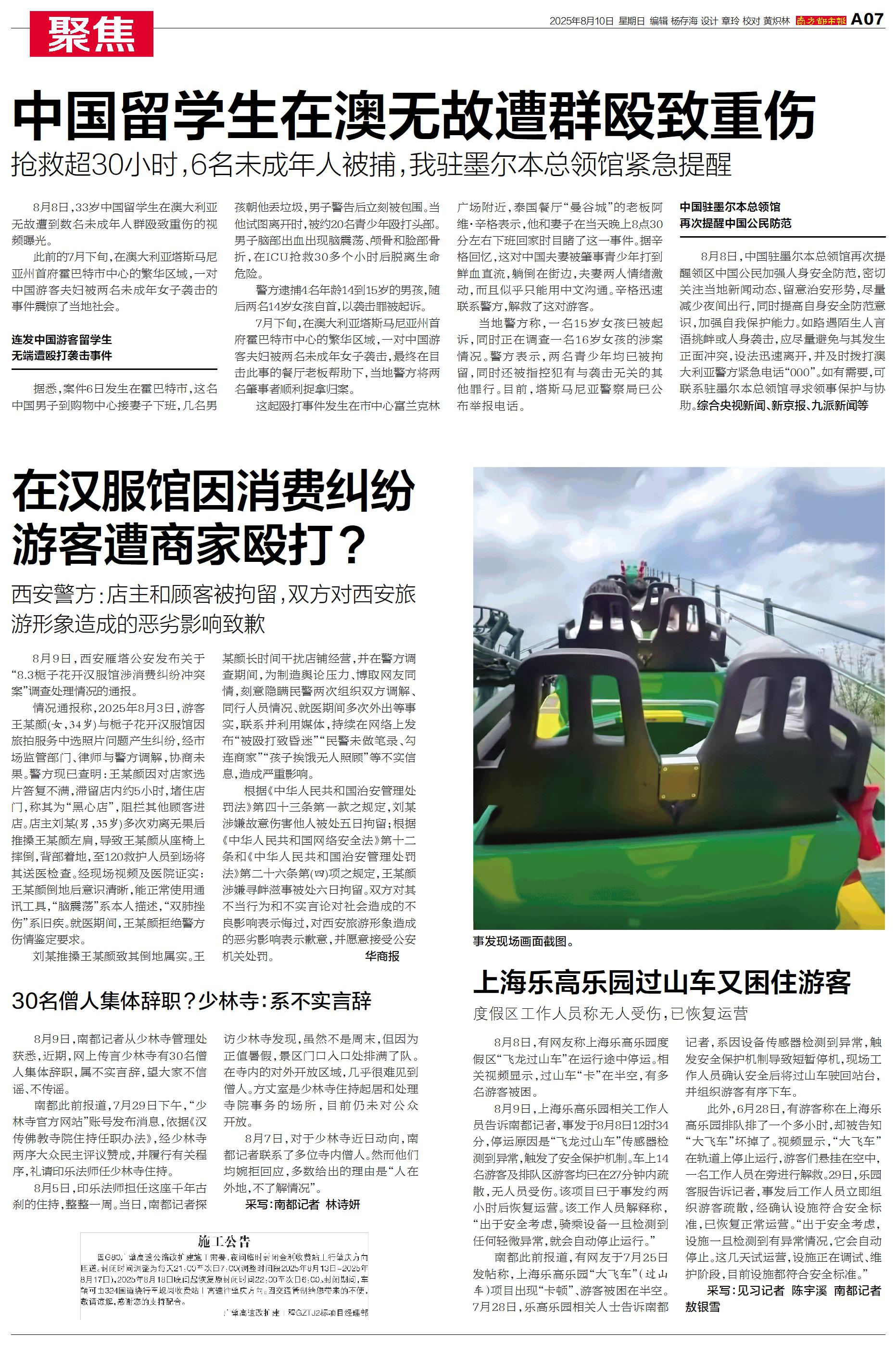 南都此前报道,有网友于7月25日发帖称,上海乐高乐园“大飞车”(过山车)项目出现“卡顿”、游客被困在半空。7月28日,乐高乐园相关人士告诉南都记者,系因设备传感器检测到异常,触发安全保护机制导致短暂停机,现场工作人员确认安全后将过山车驶回站台,并组织游客有序下车。