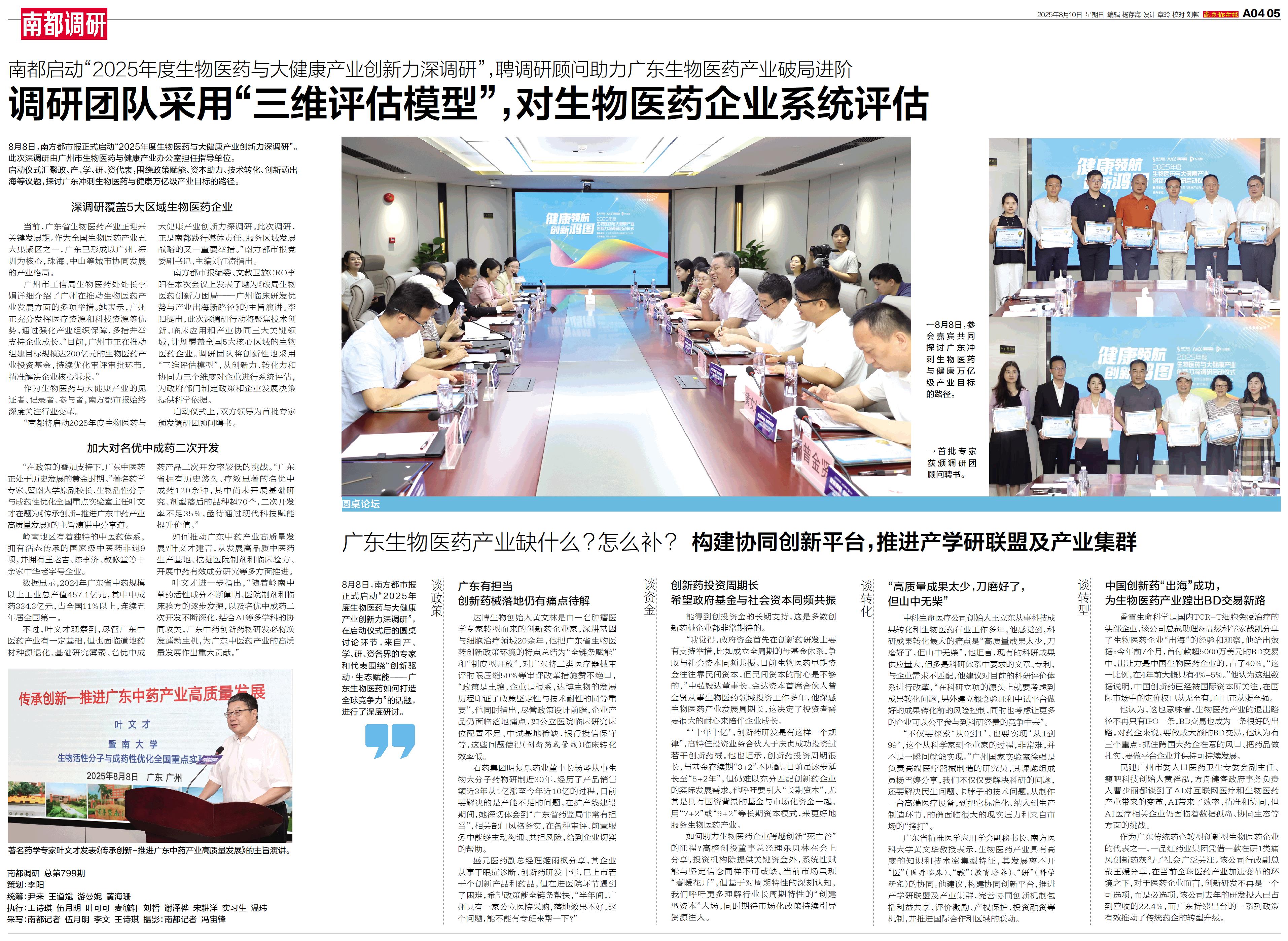 8月8日,南方都市报正式启动“2025年度生物医药与大健康产业创新力深调研”。此次深调研由广州市生物医药与健康产业办公室担任指导单位。