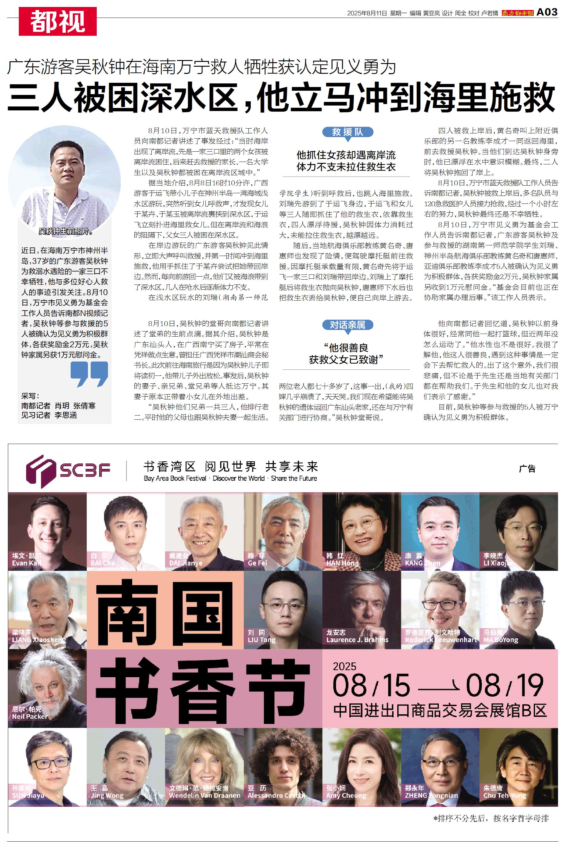 近日,在海南万宁市神州半岛,37岁的广东游客吴秋钟为救溺水遇险的一家三口不幸牺牲,他与多位好心人救人的事迹引发关注。