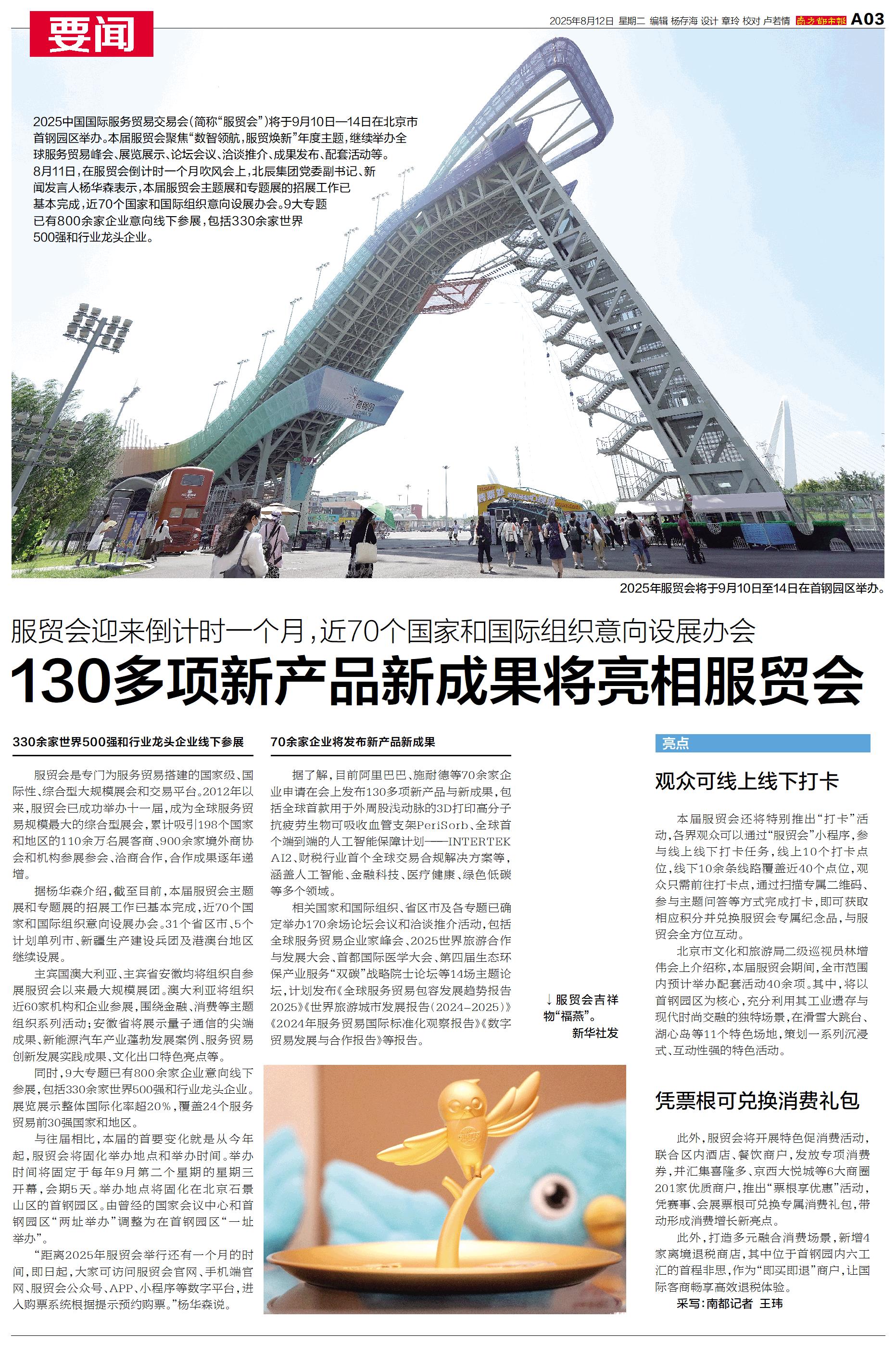 2025中国国际服务贸易交易会(简称“服贸会”)将于9月10日—14日在北京市首钢园区举办。